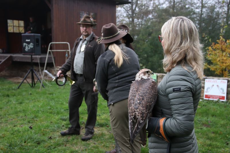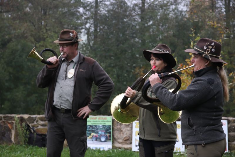 Slavnostní ráz akce podtrhly lovecké fanfáry v podání trubačů či účast sokolnice se samičkou raroha. „Jmenuje se Bambi, je jí patnáct a osm let byla u armády na letišti v Náměšti nad Oslavou. Teď spolu děláme sokolnictví,“ informovala Anna Pohanková z jihlavského sokolnického střediska.