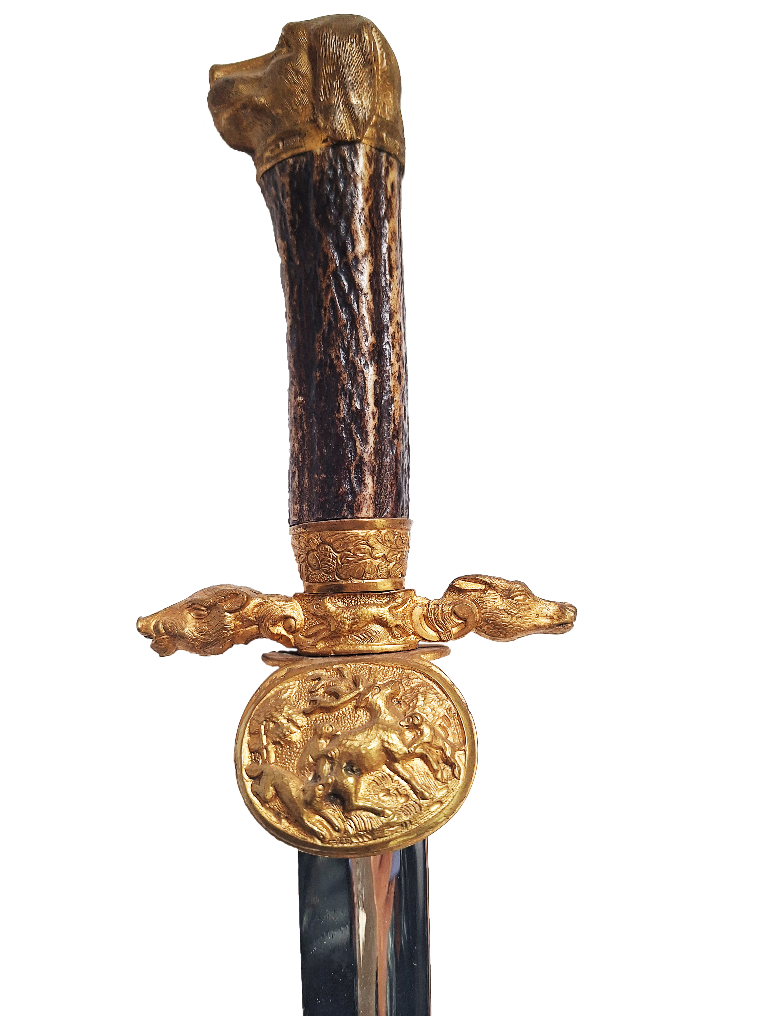 V souvislosti se zbraněmi nesmíme opomenout ani lovecké tesáky. Ty měla z počátku právo nosit pouze šlechta a pravodatní vyučení myslivci, kteří se zabývali lovem a péčí o zvěř. V muzejních sbírkách je zapsán například tesák s pochvou a závěsným řemenem pocházející z konce 19. století. V tomto případě je bohatě zdobená jak sama zbraň, tak i kování na kůží potažené pochvě. Rukojeť je vyrobena z rohoviny, mušle má podobu odlitku znázorňujícího štvanici na jelena, záštita je pak zakončena kančí a laní hlavou. Kování na pochvě je dekorováno rostlinným motivem, lesním rohem, tesákem či motivem lovecké brašny. Jelikož tesák býval nošen na levém boku v závěsu přes pravé rameno, je opatřen také 120 cm dlouhým závěsným řemenem.