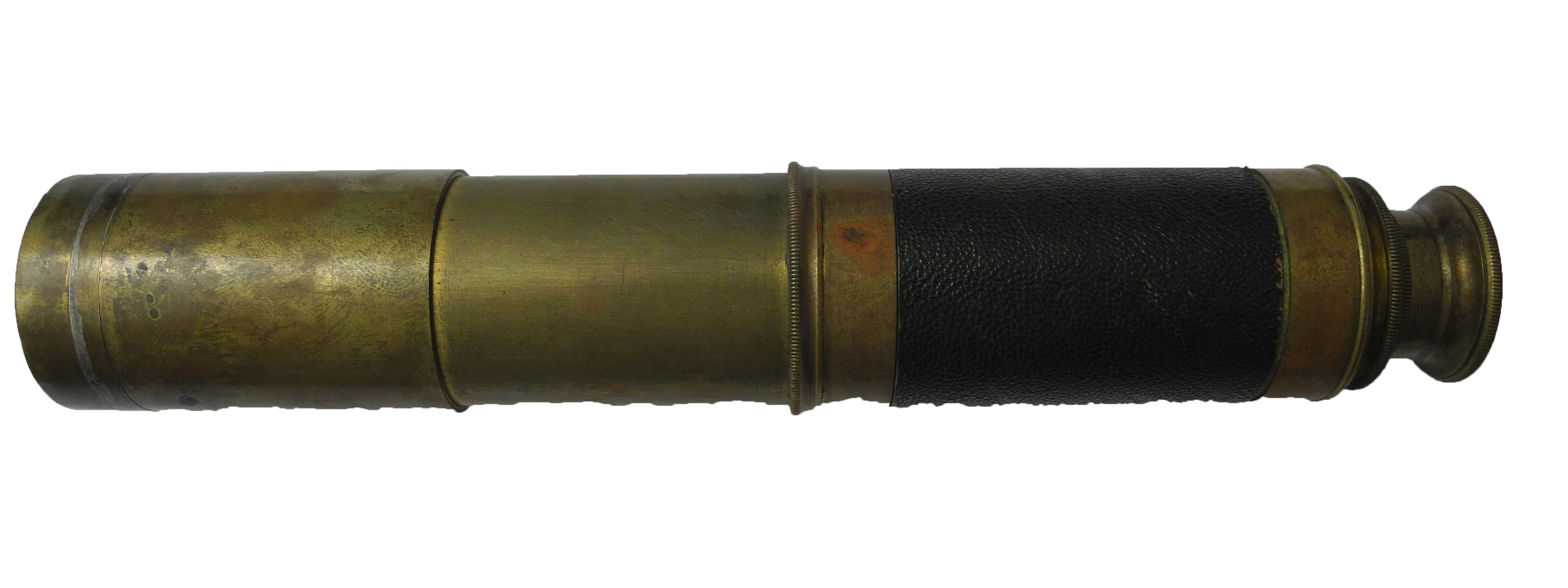 Nedílnou výbavou cestovatelů býval také dalekohled. S jedním takovým mosazným, i když dnes už bohužel nefunkčním, se můžeme setkat i v našem depozitáři. Jedná se o vysouvací trubkový monokulární dalekohled, tedy dalekohled pro pozorování jedním okem. Jedna část je pevná, tři další části jsou vlastně do sebe se zasouvající tubusy. Samotný dalekohled je uložen ve válcovitém koženkovém pouzdře.