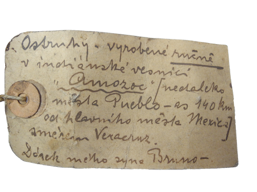 K zajímavým předmětům, které nás přenesou až na druhý konec světa, patří soubor šesti obsidiánových hrotů, které byly zřejmě součástí indiánských oštěpů. Mají tvar úzkého člunku, popřípadě trojúhelníku s délkou od 3 do 12 centimetrů. Obsidián je vlastně druh sopečného skla, které vzniká z rychle ochlazené lávy. Je znám svou tvrdostí a ostrými hranami, čehož bylo využíváno k výrobě hrotů na kopí. Díky ostrým hranám snadno pronikaly do masa zvířat, a tak byly tyto oštěpy efektivním nástrojem pro lov. Použití obsidiánu pro zmíněné účely bylo registrováno především v oblasti Střední a Jižní Ameriky, a to ještě v 19. století převážnou většinou indiánských kmenů.