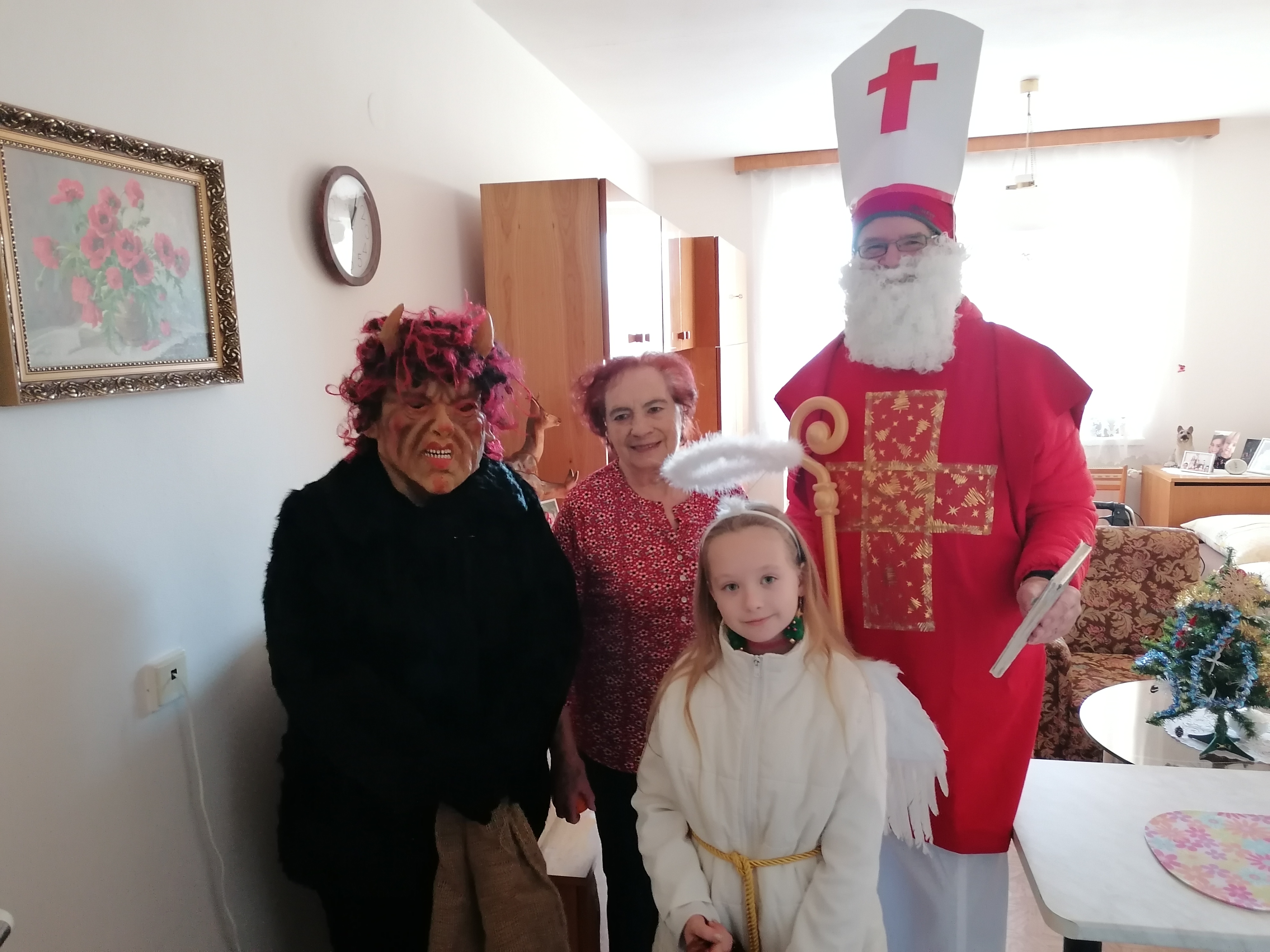 I v našem DPS byl prosinec rušný. Řadu akcí zahájil Mikuláš se svou suitou. Setkání s ním bylo krátké, ale příjemné. Navštívil s čertem a hezoučkým andělem každý náš pokoj. To už těsně před ním udělal i pan děkan, který s přáním zdraví a krásných Vánoc navštívil i ty, co nechodí na mši. To opravdu potěšilo.