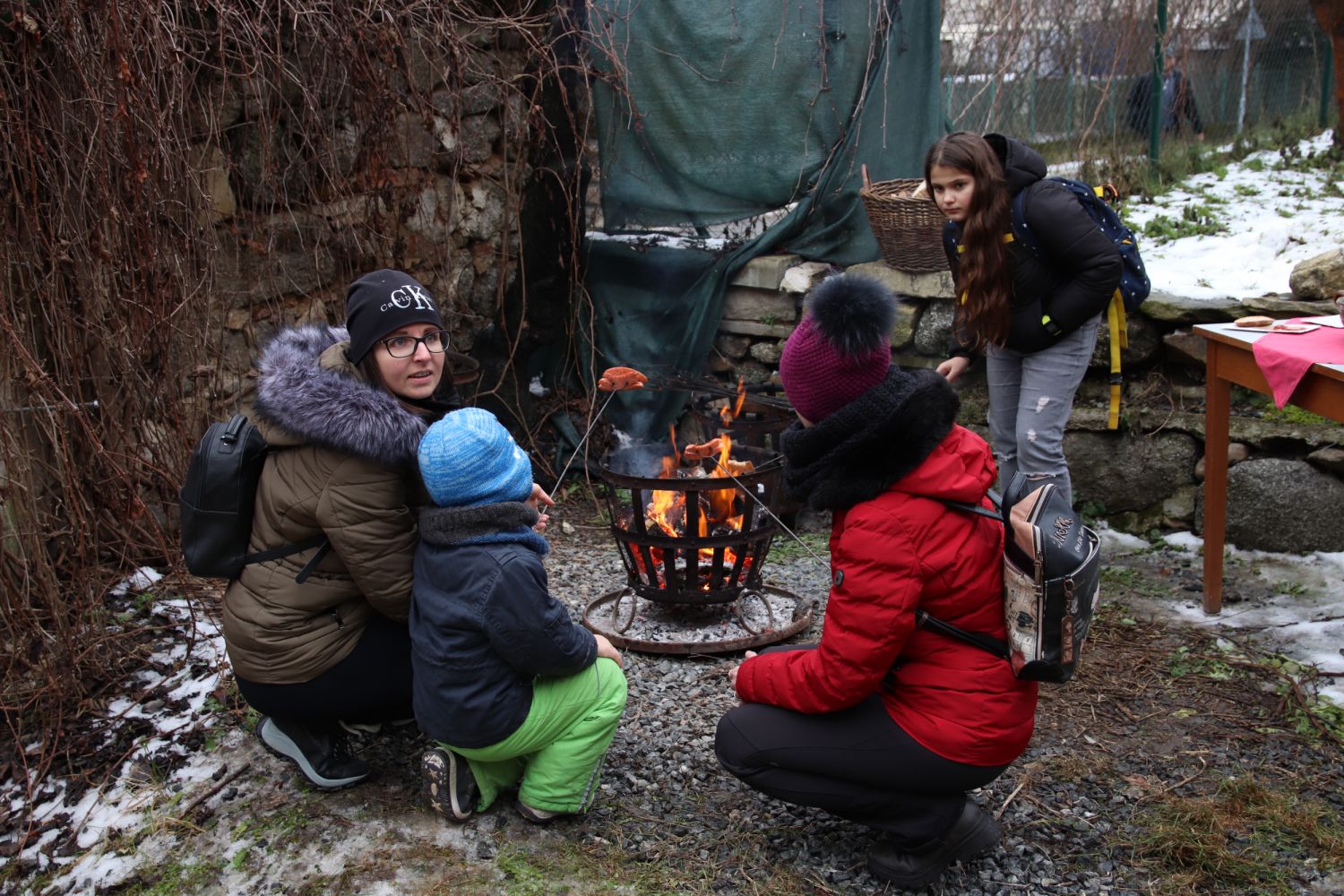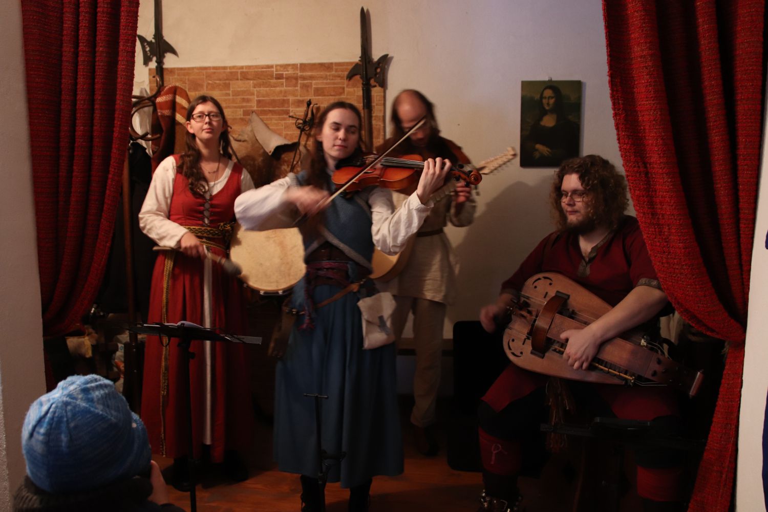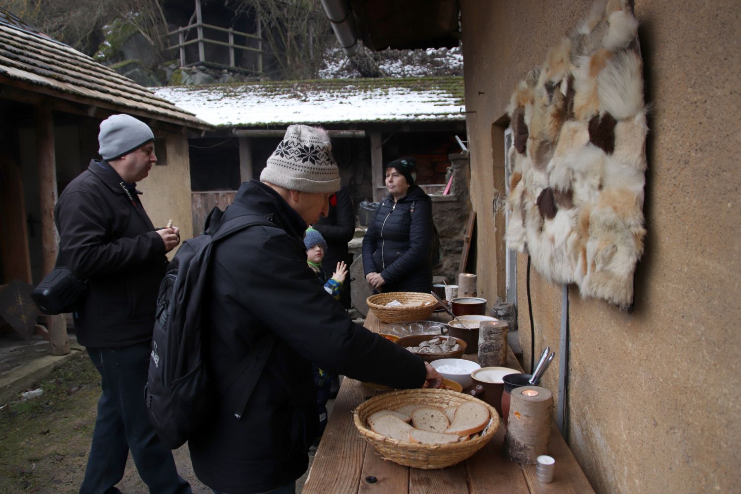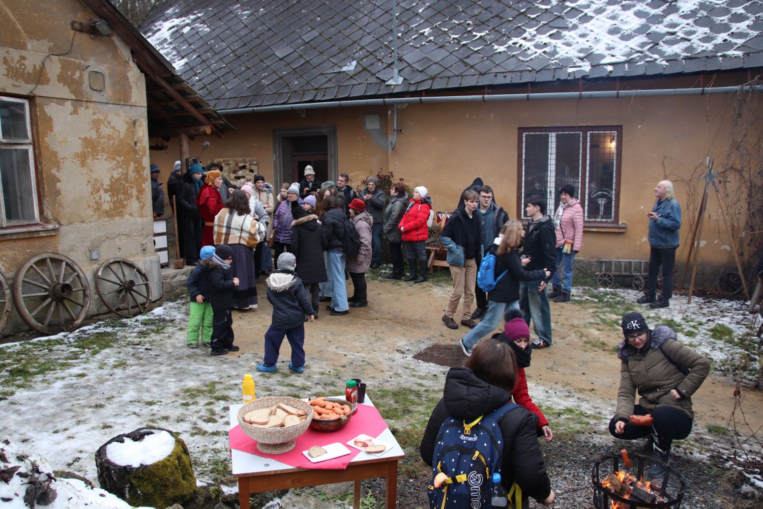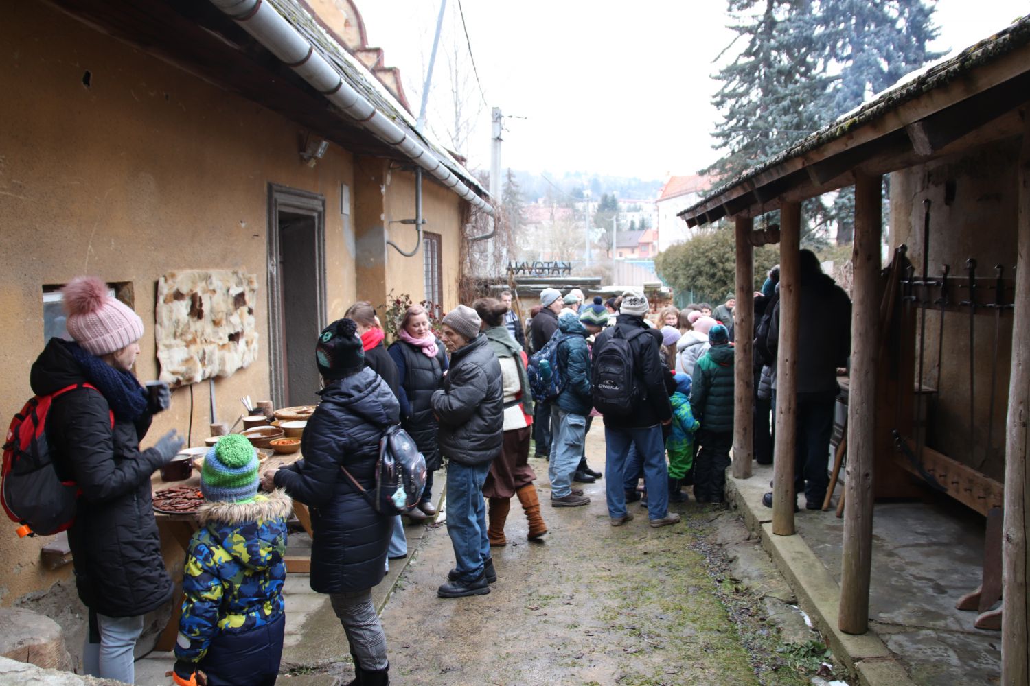 V katovně, kde hřála kamna, se podávalo občerstvení a hrála středověká a staroseverská hudba Stella Umbra. V kovárně i na dvorku hořel oheň a zájemci mohli opékat špekáčky. Někteří však dali přednost voňavým škvarkům, jitrnicím a jelítkům či chlebu se sádlem a s cibulí. Ku spokojenosti hostů tak nechybělo nic.