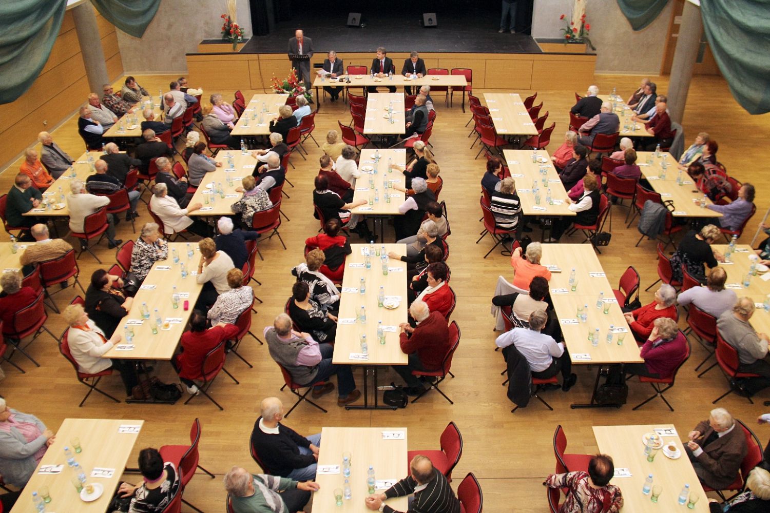 Starosta města Radovan Necid pak přítomným připomněl, že Kablovka v minulosti patřila a i v dnešní době se řadí mezi nejvýznamnější zaměstnavatele ve městě. Seznámil pak seniory se zásadními akcemi, které ve městě proběhly. Loni to byla stomilionová rekonstrukce Jupiter clubu. Letos jdou peníze zejména do oprav ulic – tedy kanalizací a vodovodů spolu s chodníky, komunikacemi a veřejným osvětlením. A bude to pokračovat i v roce 2016, kdy by měla přijít na řadu i stavba okružní křižovatky Hornoměstská/Třebíčská. Mimo to se lidé sami zajímali například o výstavbu policejních služeben v bývalém areálu technických služeb či o parkování za řekou, kde býval Svit.