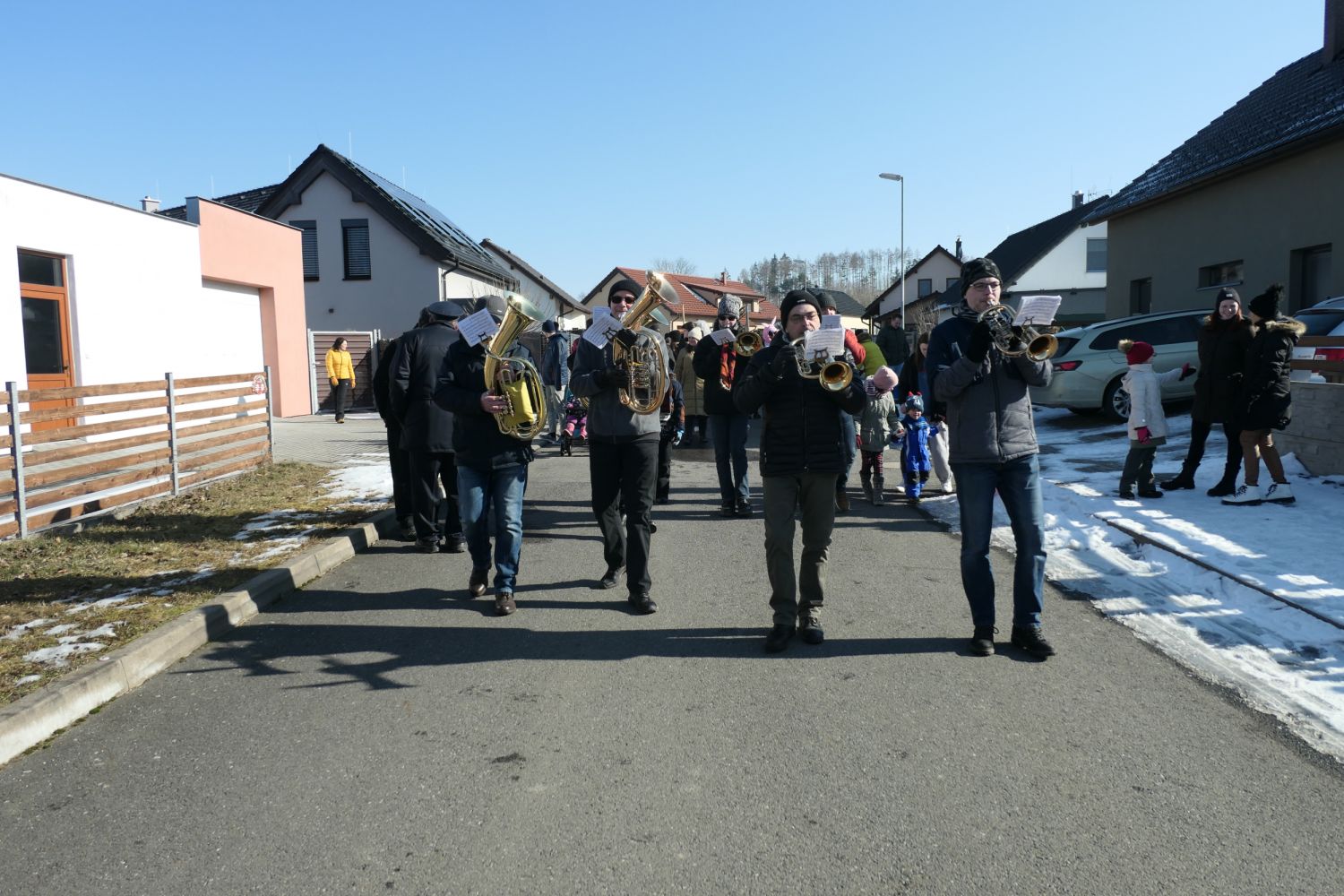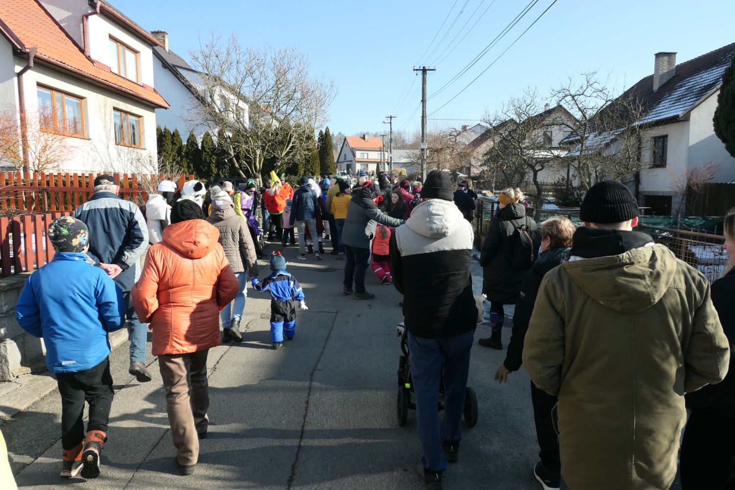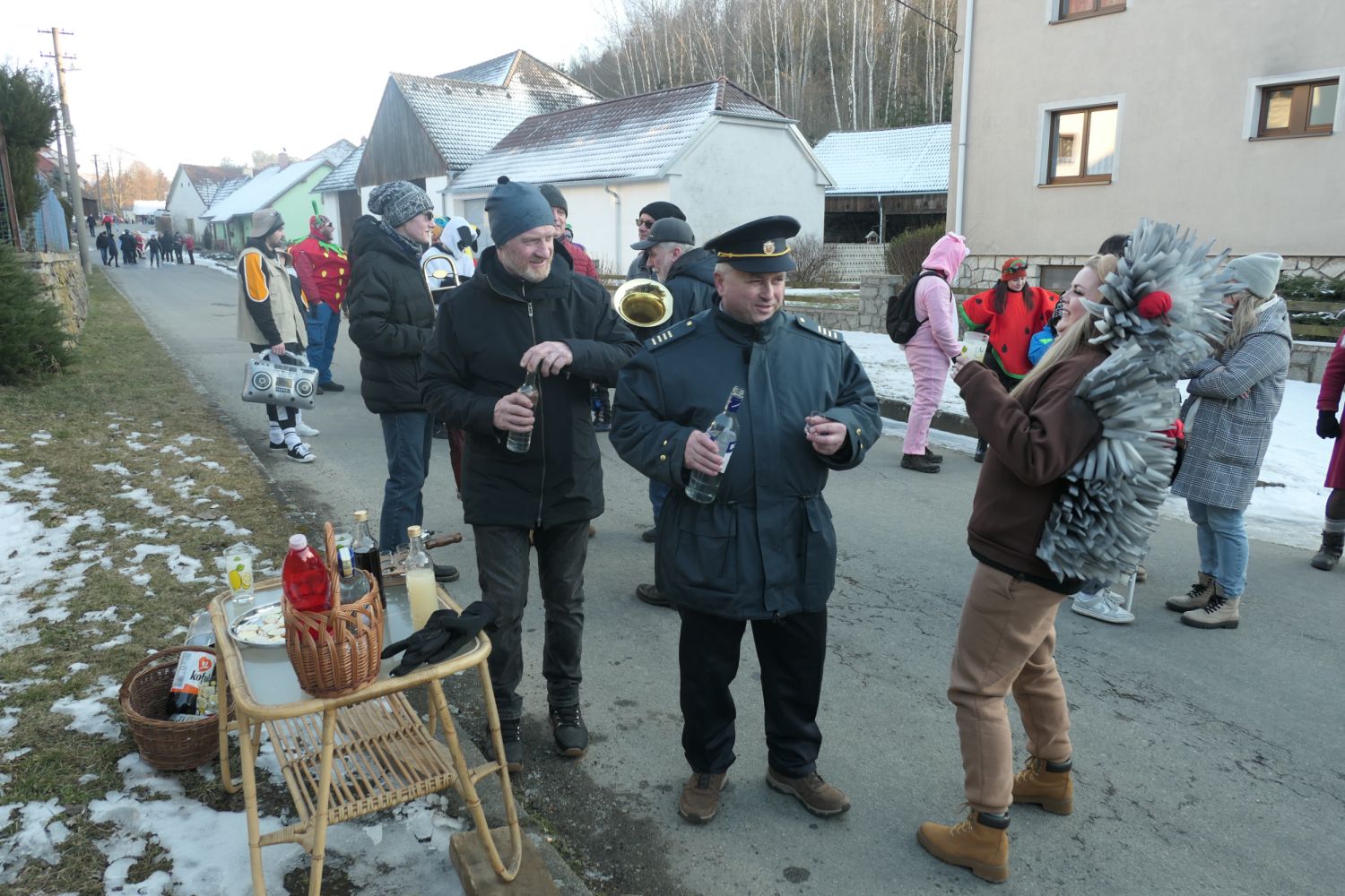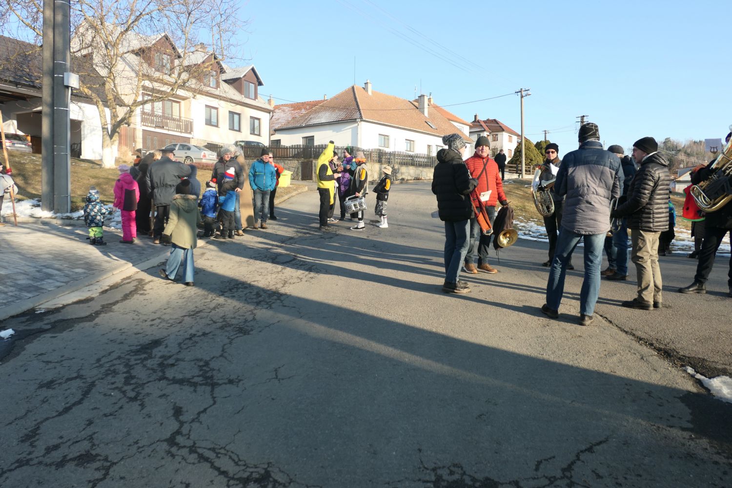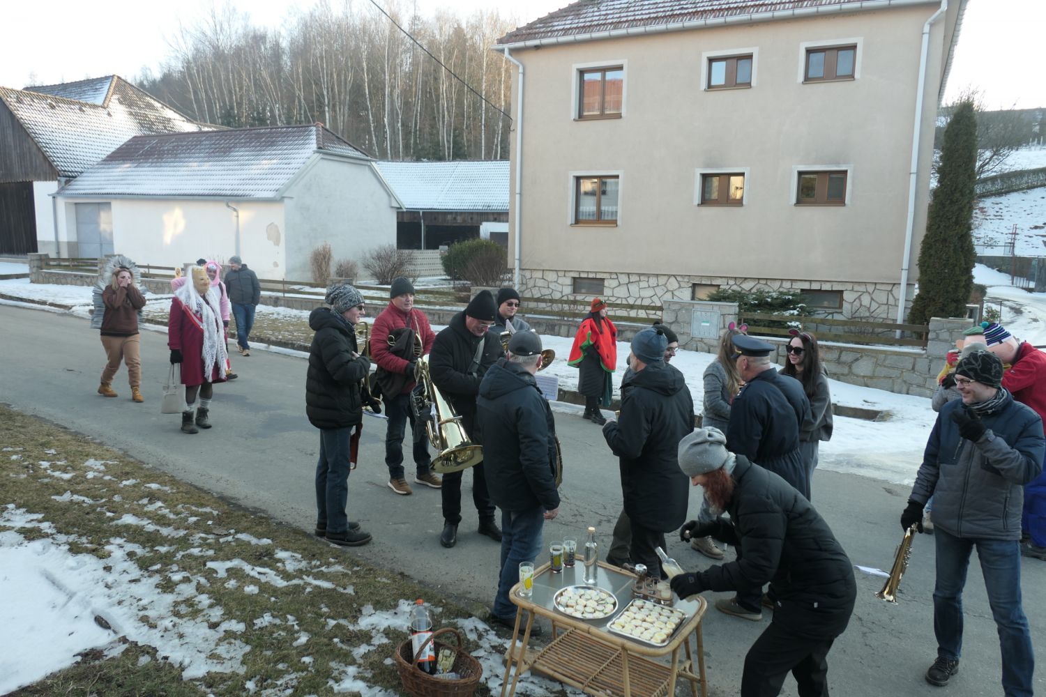 Už ve čtvrtek jsme přivezli živého, doma krmeného čuníka, který byl připraven na páteční zabijačku. Ta proběhla tradičně u Kubišů a mistr řeznického řemesla, spolu s mnoha pomocníky se jí i letos zhostili na jedničku. Připravili pochutiny vskutku královské. Jitrnice, jelita, tlačenka, škvarky a pečené maso, to vše se jen rozplývalo na jazyku. V sobotu dopoledne jsme udělali poslední přípravy v kulturním domě a ve 13 hodin vyšel masopustní průvod po vsi. Letos došlo k drobné změně trasy průvodu a ukázalo se, že tato změna byla prospěšná a občané ji přijali velmi kladně. Zapojili se i obyvatelé domů v lokalitě "Za Jamou" a mnozí účastníci průvodu se poprvé v životě dostali do míst, kde nikdy předtím nebyli. Zhruba v polovině obchůzky obce se všichni občerstvili před kulturním domem, kde na ně čekaly všechny zmíněné pochutiny a vynikající zabijačková polévka, svařené víno a pro děti horká hruška. Masopustní průvod pak prošel zbývající část obce a ti nejodvážnější se vrátili zpět do kulturního domu, kde už probíhala příprava na večerní maškarní zábavu. Čerství muzikanti hrábli do strun a zpívalo se a tančilo až do rána. Připravena byla také bohatá tombola, ve které vyhrál prakticky každý.