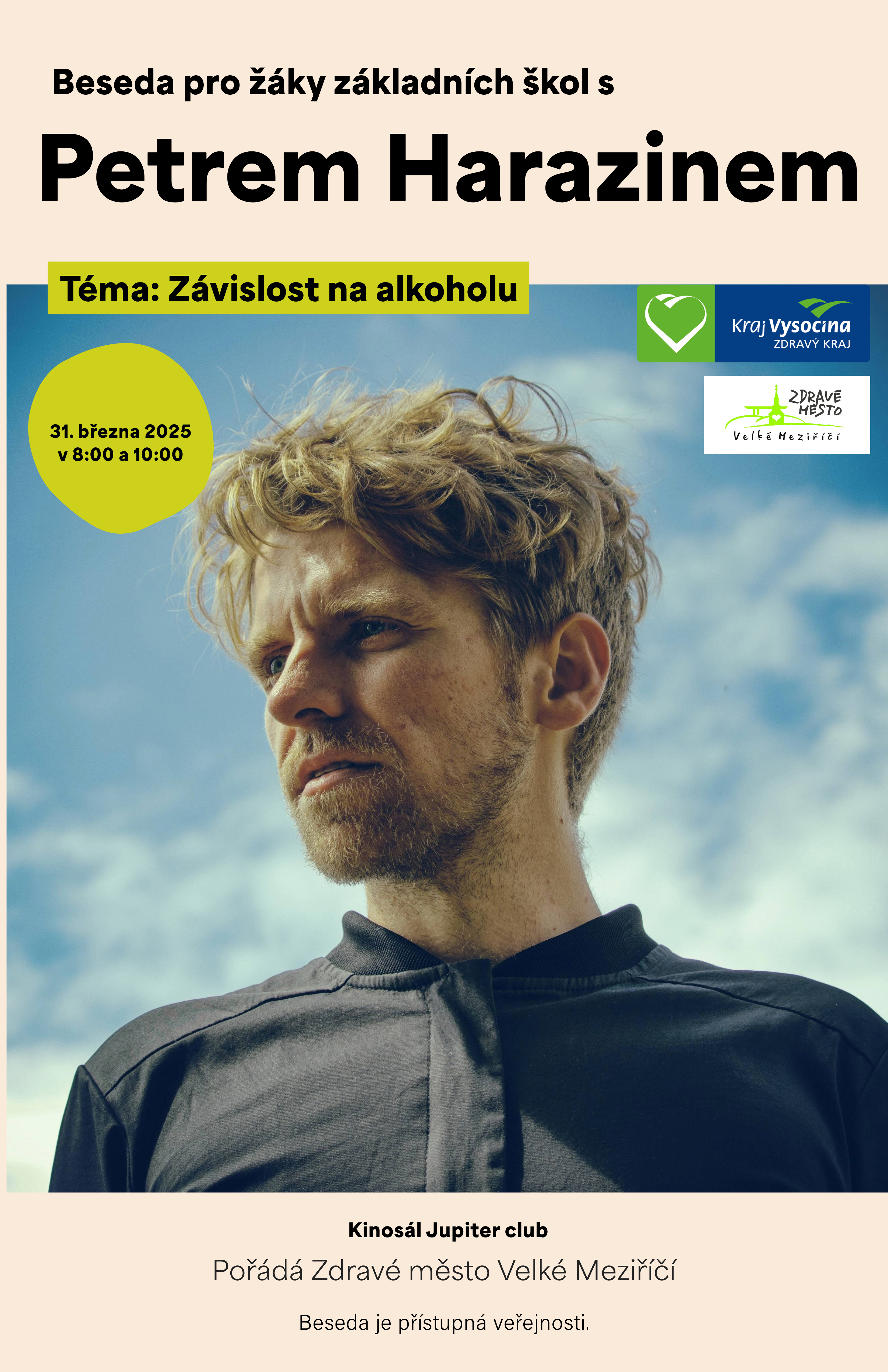 Komise Zdravého města VM si připravila naučnou přednášku pro žáky ZŠ i širokou veřejnost. Přednášet bude Petr Harazin, který s tématem Závislost na alkoholu zavítá do našeho města již potřetí. Akce se uskuteční v pondělí 31. března v 8:00 a poté znovu v 10:00 v kinosále Jupiter clubu.