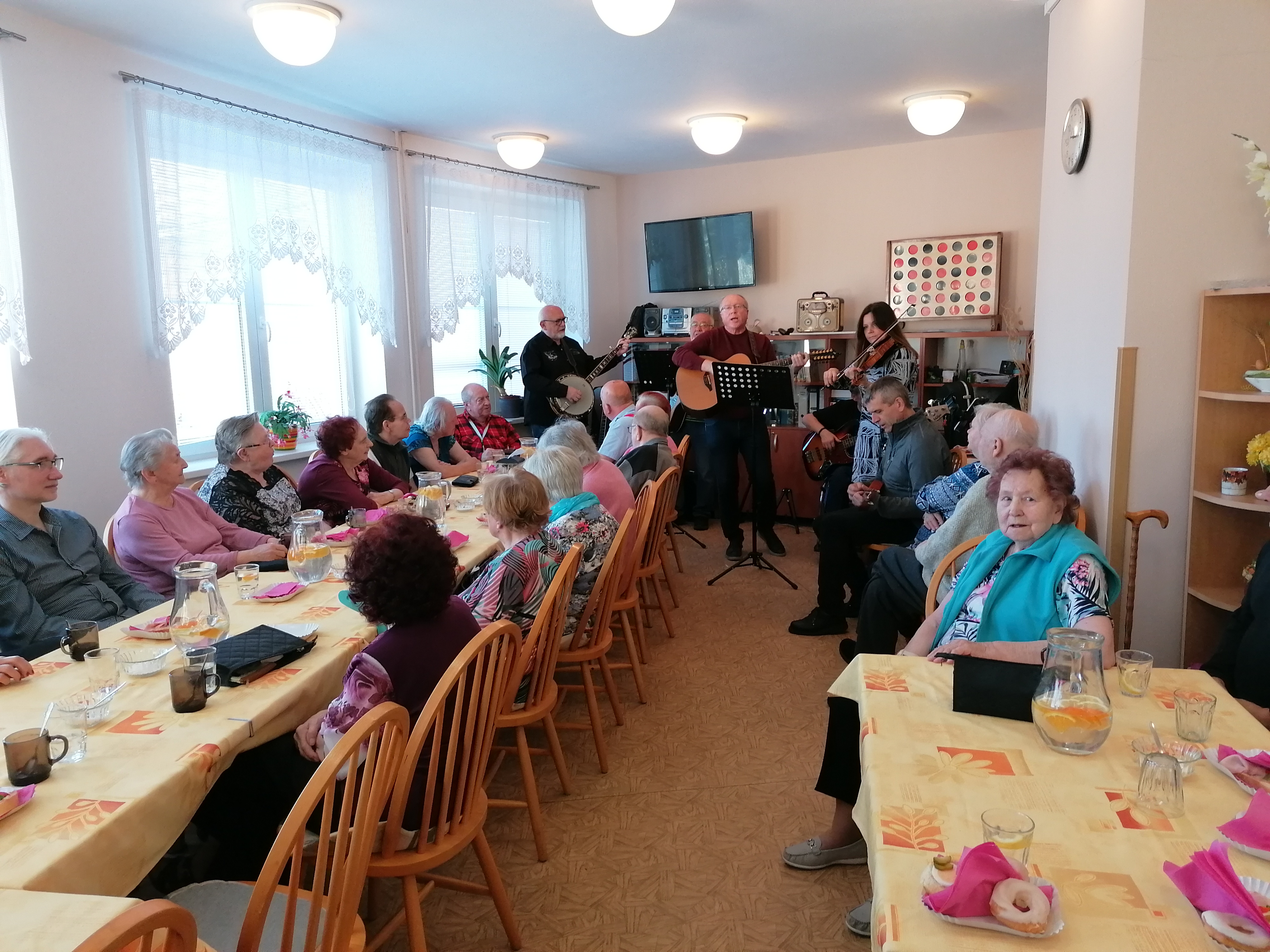 Nejnavštěvovanější bylo za poslední měsíc odpoledne s kapelou Weget. Nebyla u nás poprvé a hrála jako obvykle country. Tato skupina muzikantů je u nás známa spíše pod názvem kapela JUDr. Pavlase, zpěváka a organizátora akce. Chceme jim všem osobně poděkovat za těch několik hodin pohody, kdy nám bylo dobře. Děkujeme tak všem členům kapely Weget, kteří pro nás obětovali svůj volný čas. Byli to pánové JUDr. Jaroslav Pavlas, Josef Netolický, Karel Bílek, Oldřich Holán a R.D. Jiří Káňa. Na housle precizně hrála Mgr. Naďa Dvořáková. Moc děkujeme. Spolu s nimi toto naše pěkné březnové odpoledne absolvovali také p. starosta města Alexandros Kaminaras, p. místostarosta Martin Kaman a naše paní ředitelka Jana Nachtigalová.