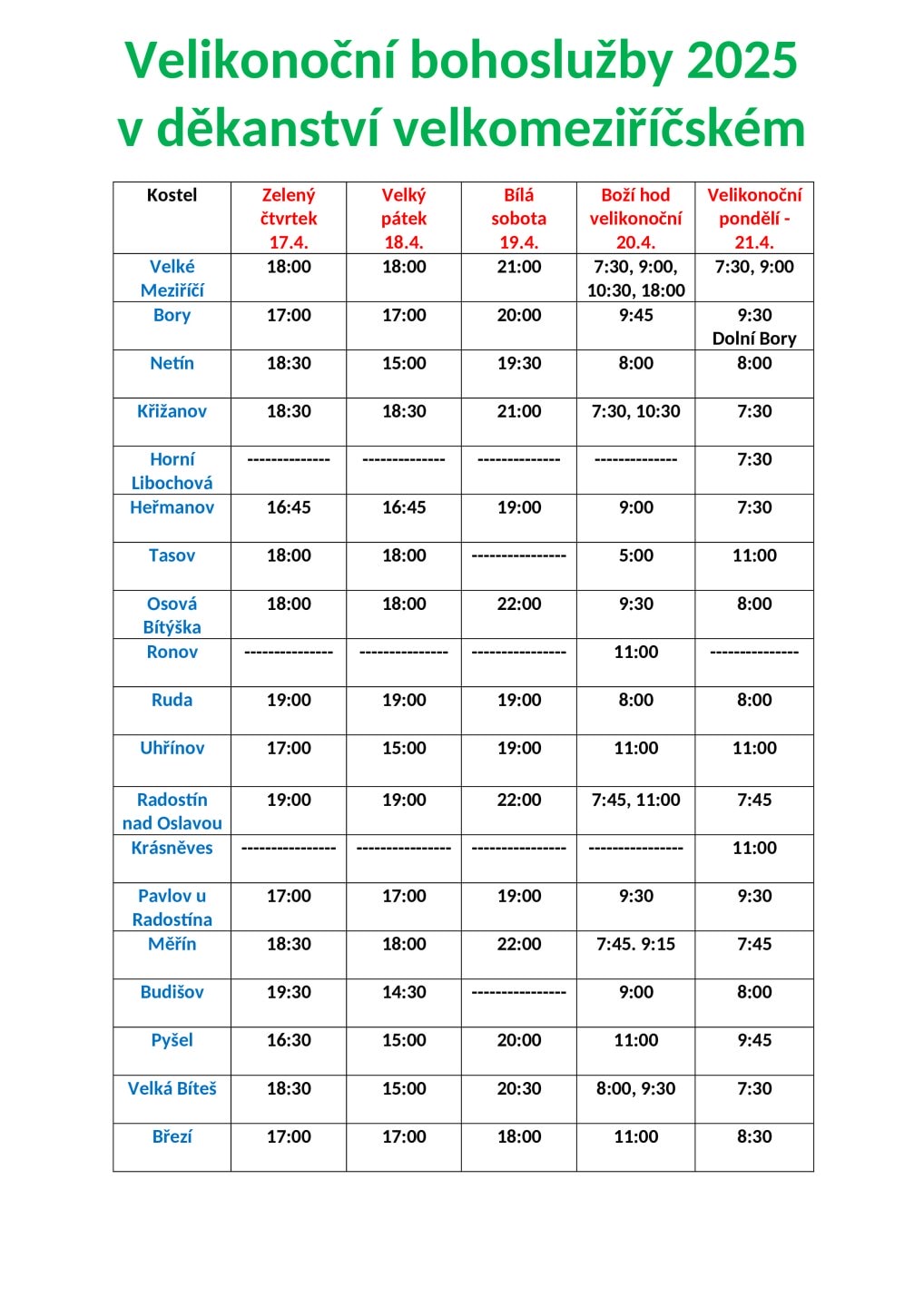 Velikonoce jsou největší křesťanský svátek. Jaké budou letos v děkanství velkomeziříčském? Přehled velikonočních bohoslužeb najdete na webu farnosti.