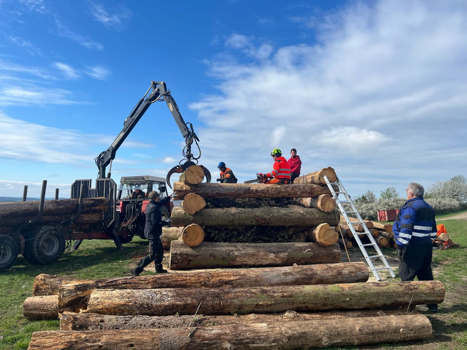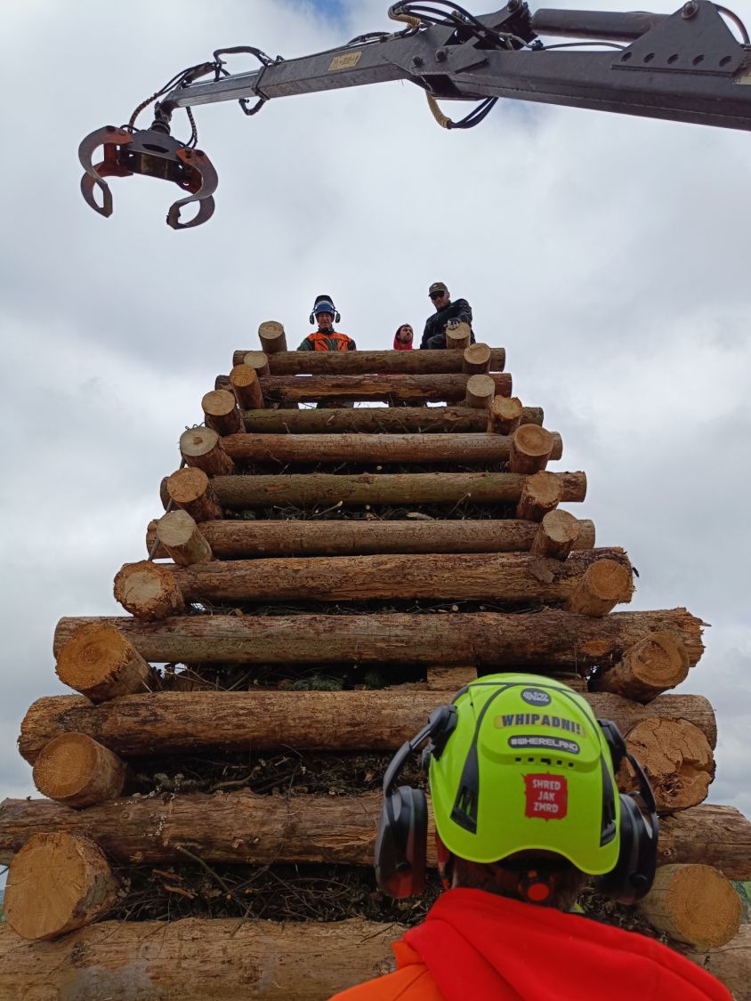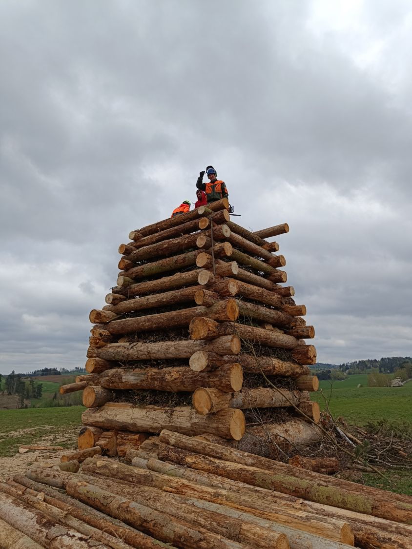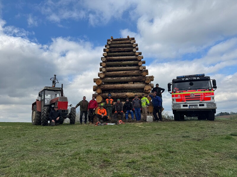 O sobotním ránu se sešli hasiči na zbrojnici, zkontrolovali připravenost motorových pil a společně vyrazili na Fajtův kopec, kde už čekala připravená kulatina na stavbu vatry. Počasí přálo, a tak stavba rychle nabývala do výšky. Děkujeme Pavlu Zezulovi z Tasova, který nám pomáhal se svým traktorem, a tím přispěl k rychlému dokončení stavby. Dále bychom chtěli poděkovat Jiřímu Pálkovi za zapůjčení další techniky a Ski klubu za občerstvení. Samozřejmě největší poděkování patří všem členům sboru dobrovolných hasičů Velké Meziříčí, kteří se podíleli na stavbě a budou se podílet i na hladkém průběhu pálení čarodějnic.