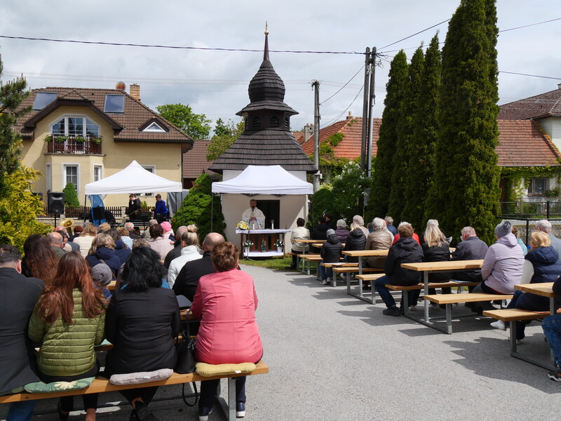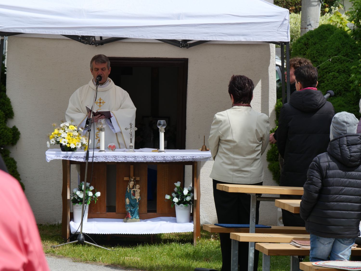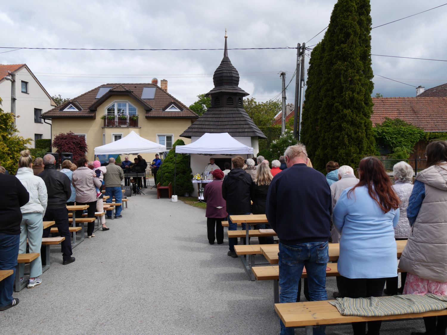 Poutní mši svatou sloužil v neděli 18. května hodinu před polednem velkomeziříčský děkan P. Jiří Kaňa. I když počasí nebylo příliš jarní, sešel se velký počet poutníků. Ale jak připomněl pan děkan: Studený máj, v stodole ráj.