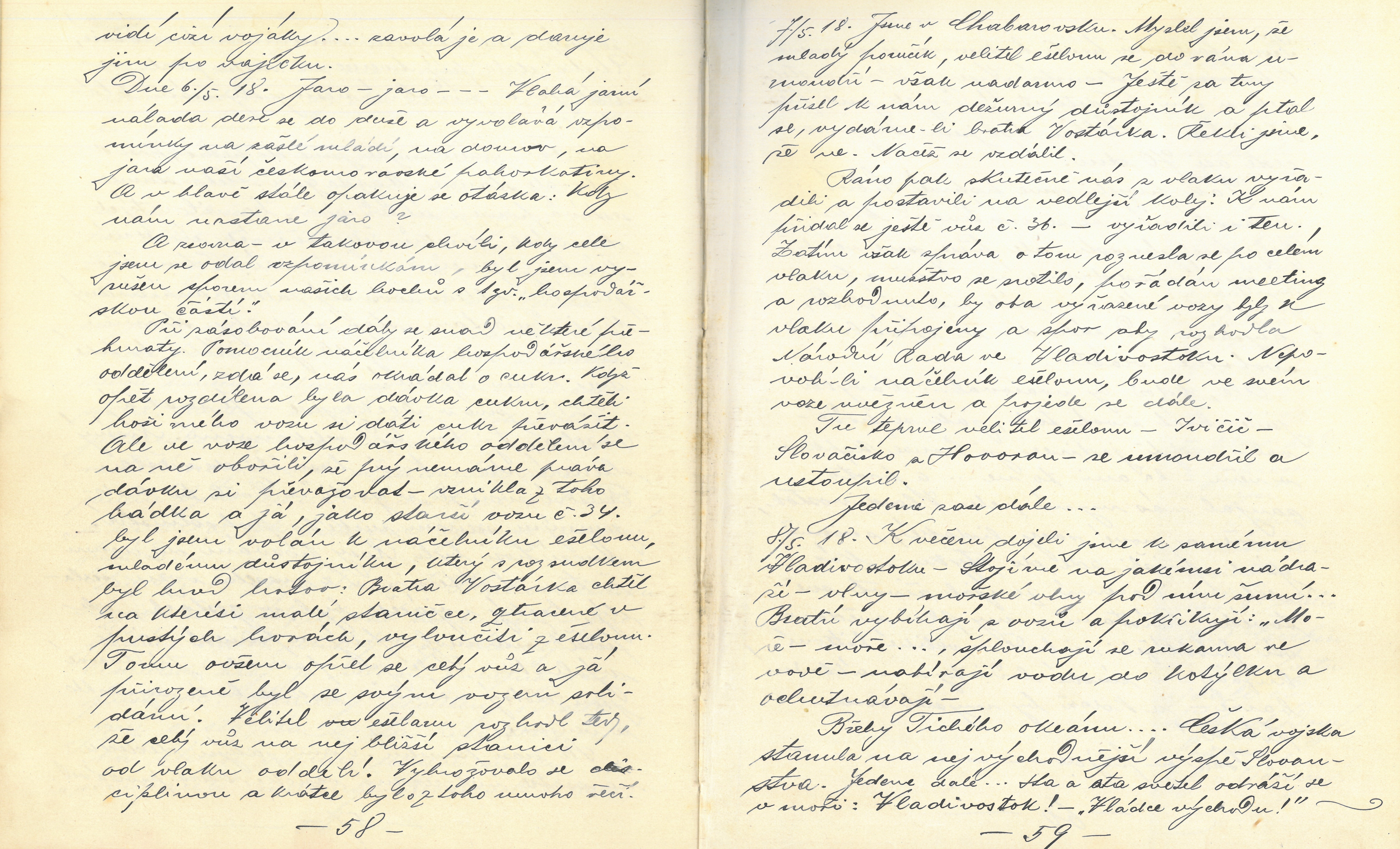 V archivu muzea se nachází velmi cenná autentická vzpomínka legionáře Josefa Dvořáka, a to osobní deník mapující cestu vlakem po Transsibiřské magistrále. Pomineme-li velmi zdařilou krasopisnou úpravu doplněnou o fotografie, mapy i dobové články, čeká nás vskutku dobrodružná výprava. Na bezmála 230 stranách zde autor podrobně líčí své zážitky z fronty, popisuje vlastní národní uvědomění, život v legiích a obavy z průběhu války. Čtenář se sice ocitne uprostřed válečné vřavy, avšak tento naturalistický výjev je zmírněn pohledem na měnící se krajinu, kterou pozoruje z vlaku, je fascinován mořem, pozoruje a obdivuje neznámá místa, poznává tamní kulturu, ve chvílích nejtěžších pak vzpomíná na domov.