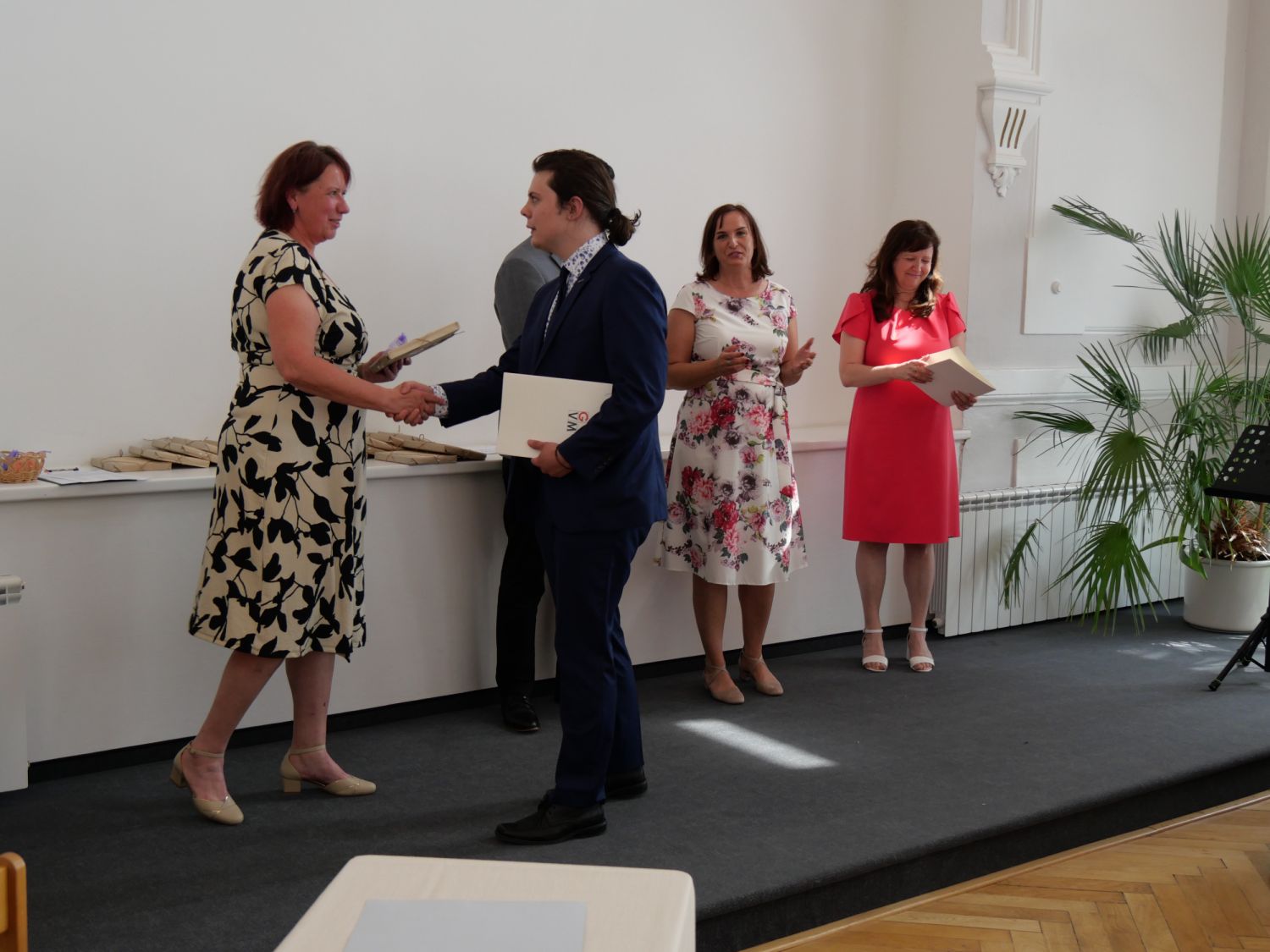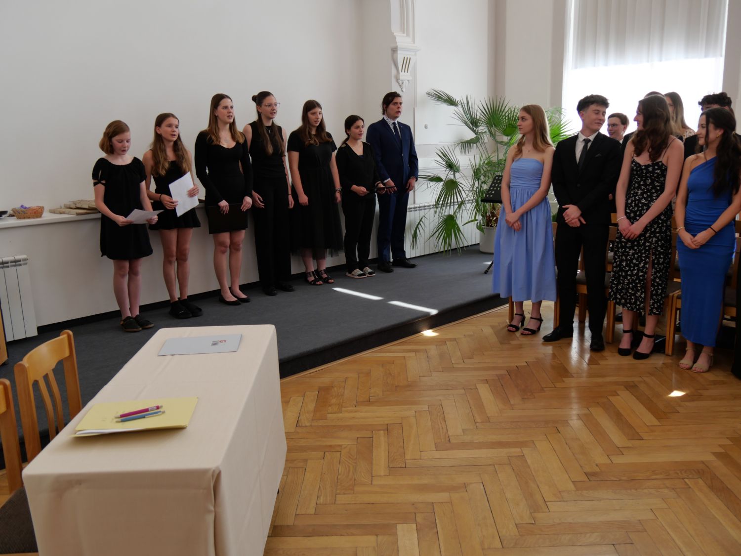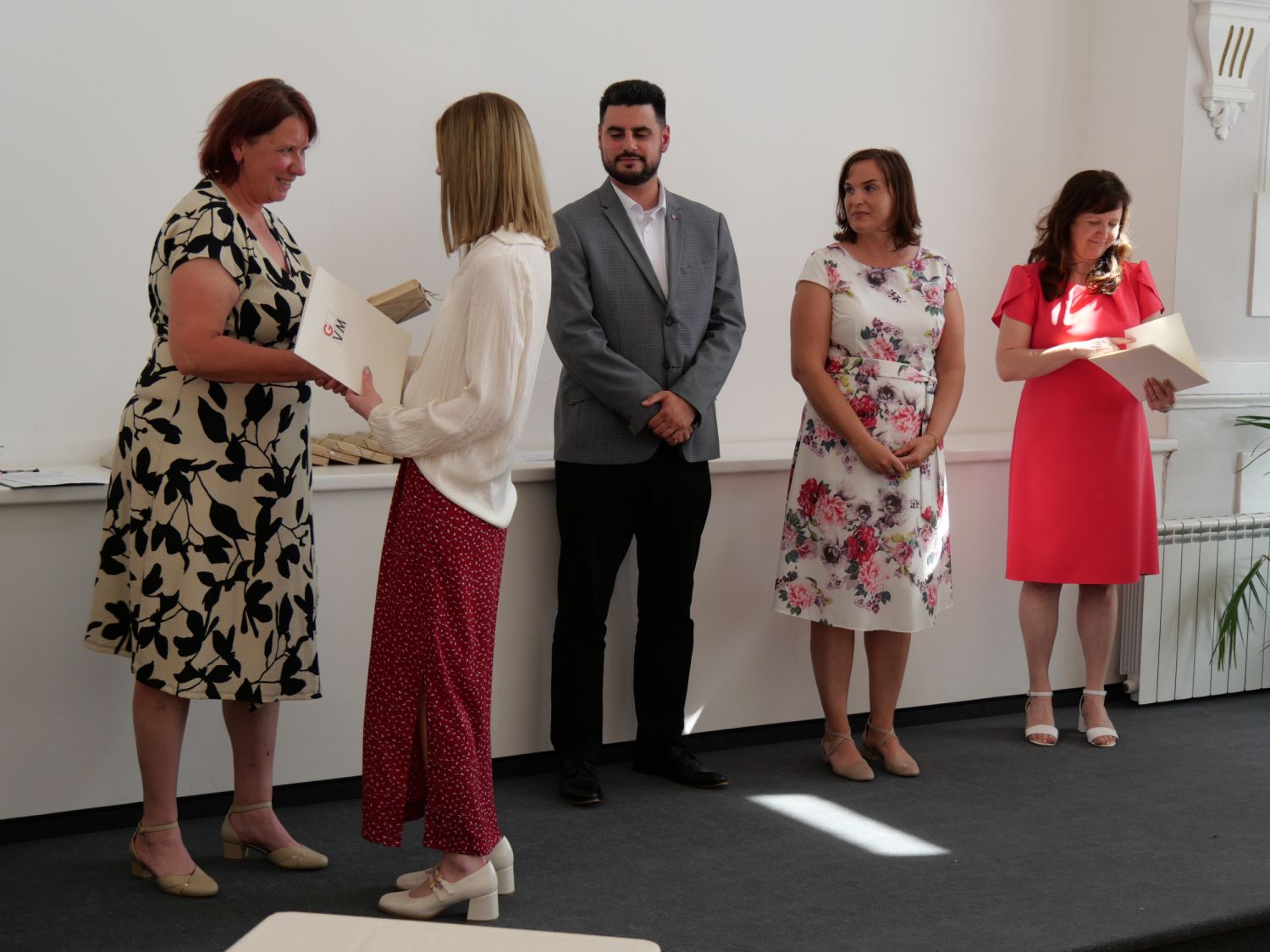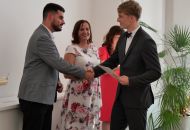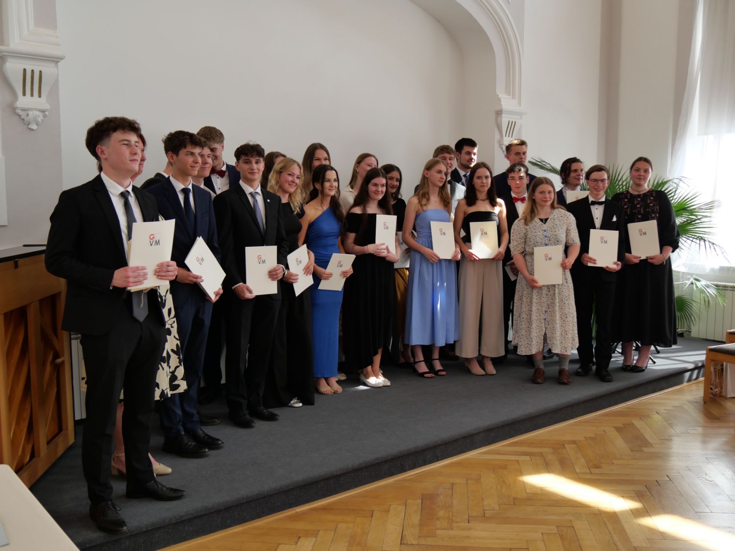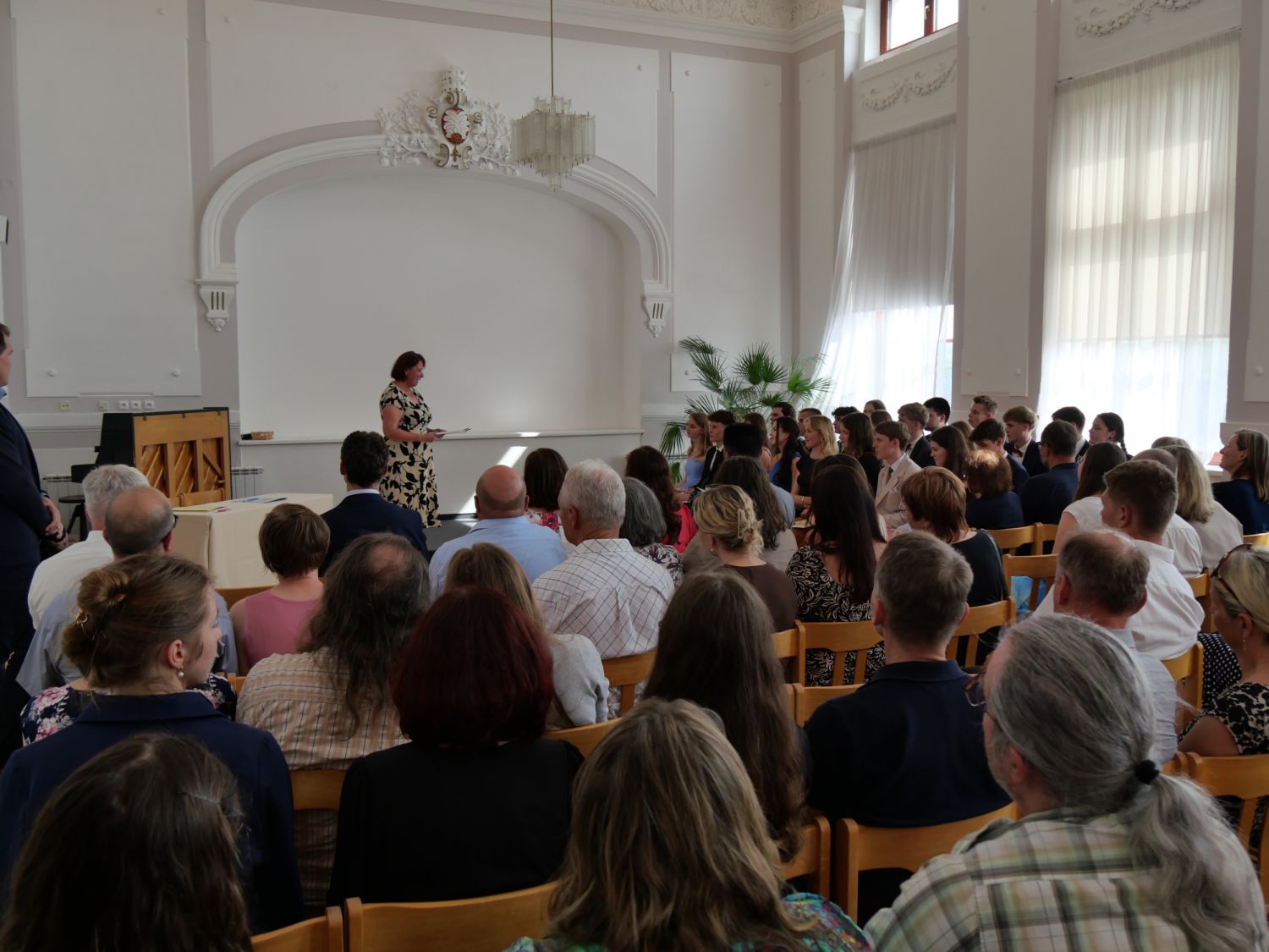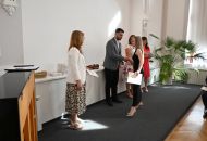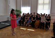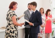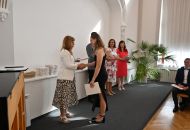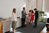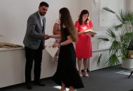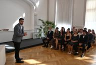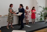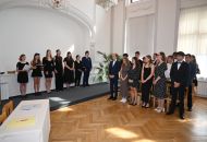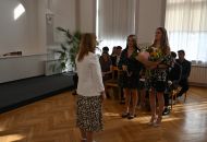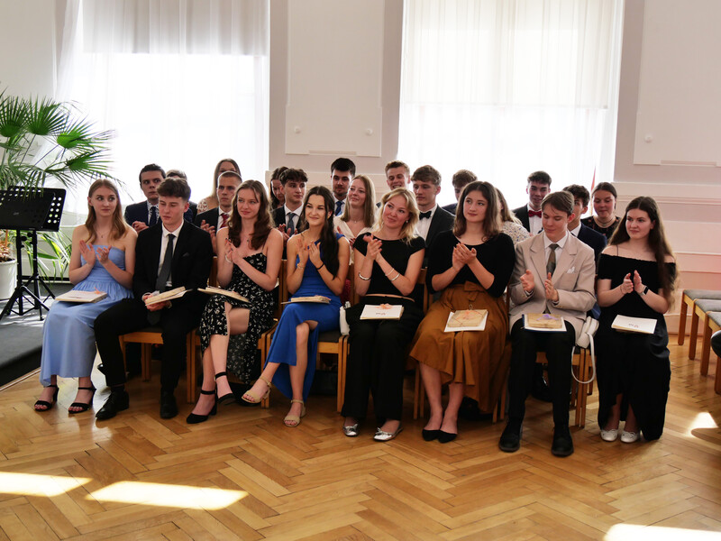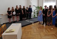 V aule školy absolventi převzali z rukou ředitelky Ilony Pokorné a starosty města Alexandrose Kaminarase ještě čerstvá maturitní vysvědčení. Šlo o 49 maturantů ze tříd 8. A a 4. C. Mimo maturitních vysvědčení dostali absolventi i vysvědčení za poslední ročník, dále pak drobný dárek a čtyři z nich stipendium za to, že po celou dobu studia prošli s vyznamenáním.