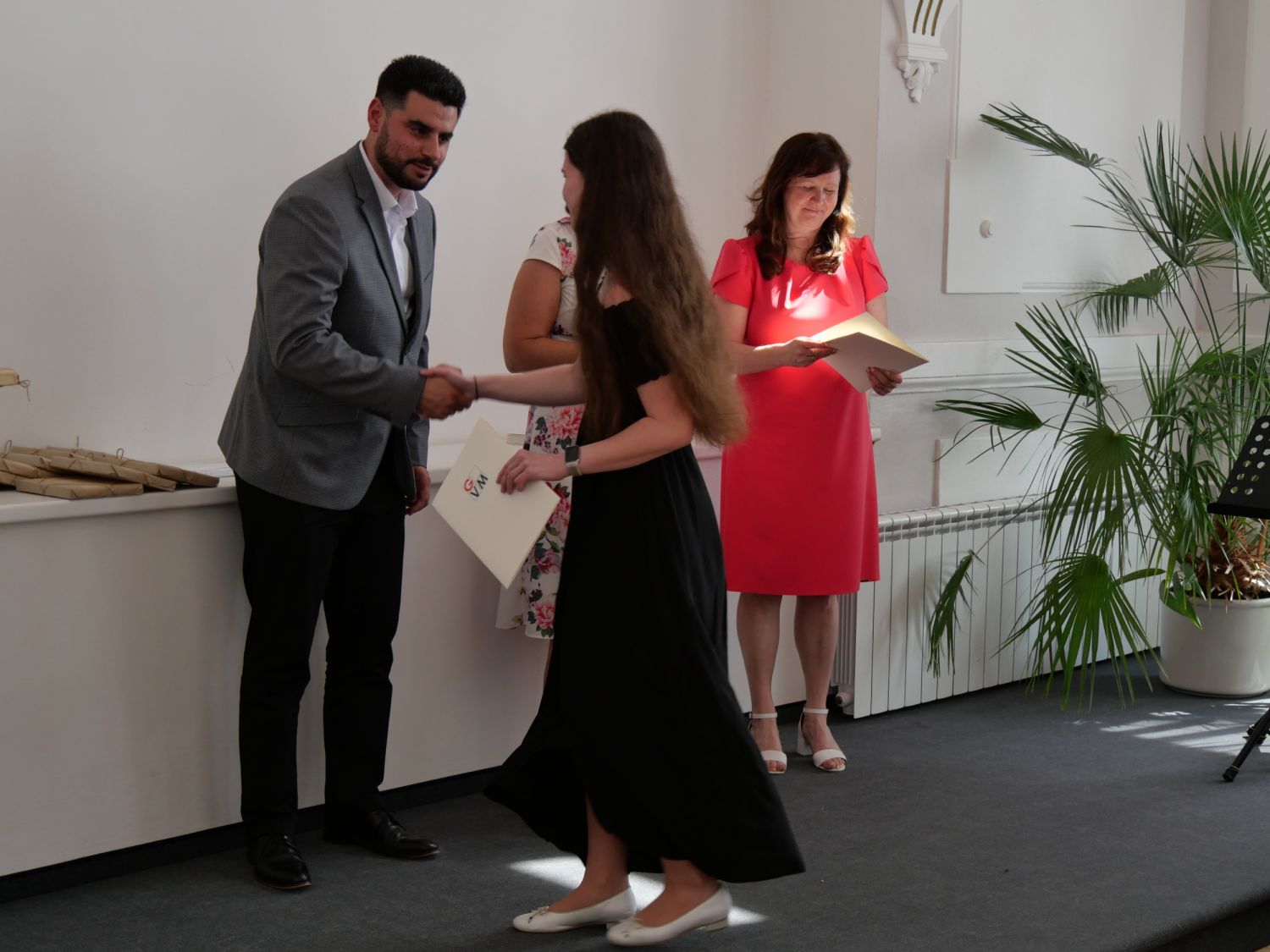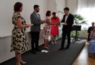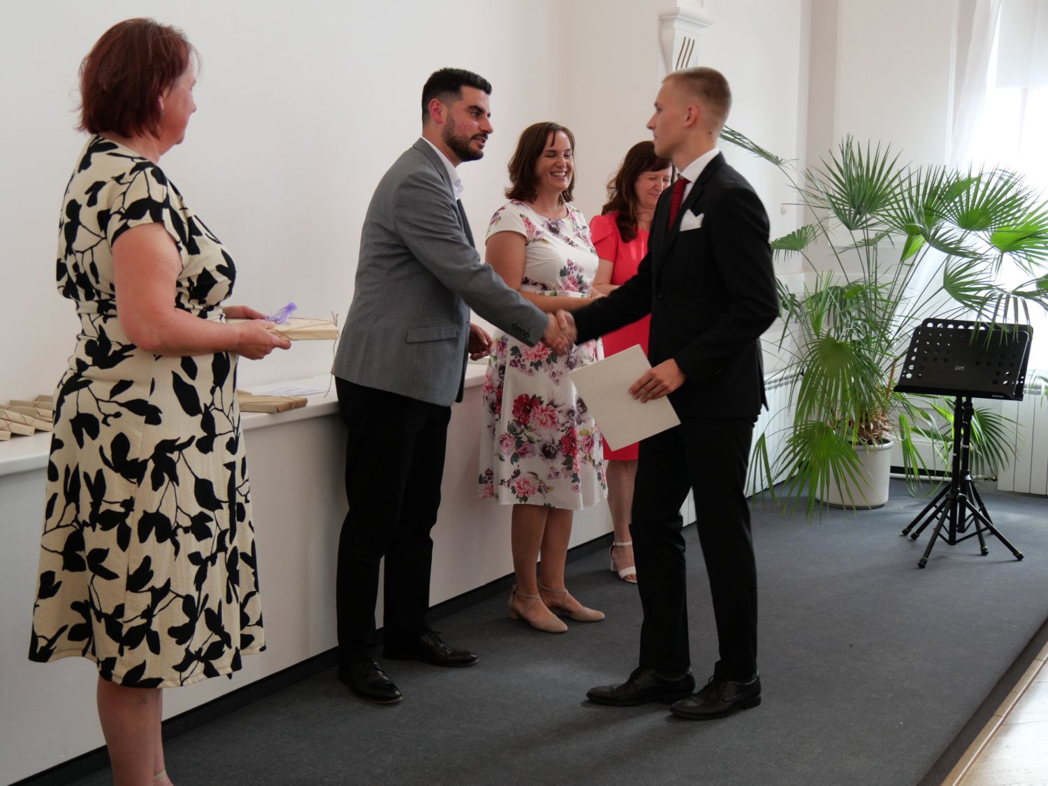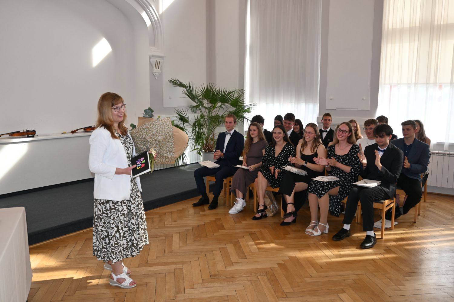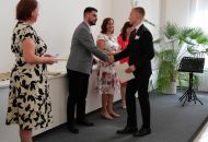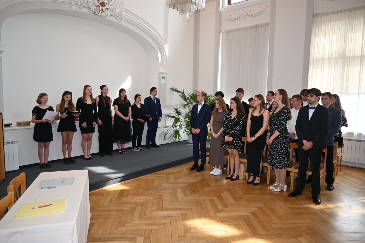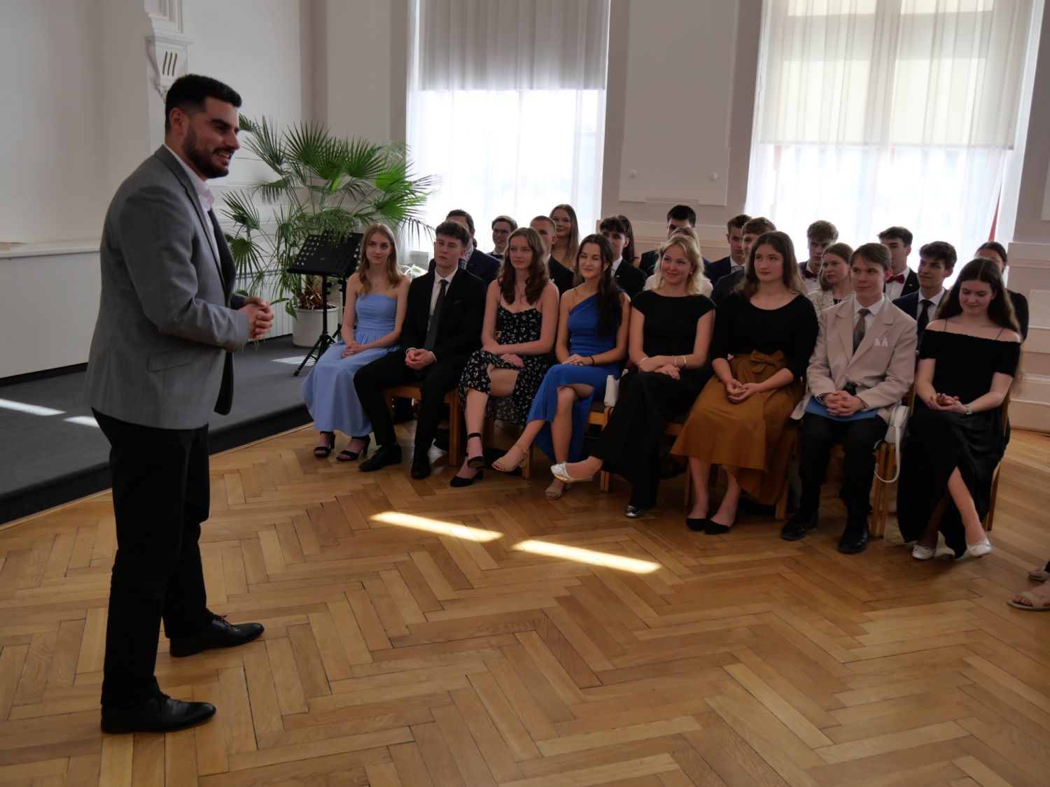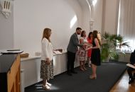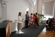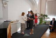 V aule školy absolventi převzali z rukou ředitelky Ilony Pokorné a starosty města Alexandrose Kaminarase ještě čerstvá maturitní vysvědčení. Šlo o 49 maturantů ze tříd 8. A a 4. C. Mimo maturitních vysvědčení dostali absolventi i vysvědčení za poslední ročník, dále pak drobný dárek a čtyři z nich stipendium za to, že po celou dobu studia prošli s vyznamenáním.