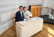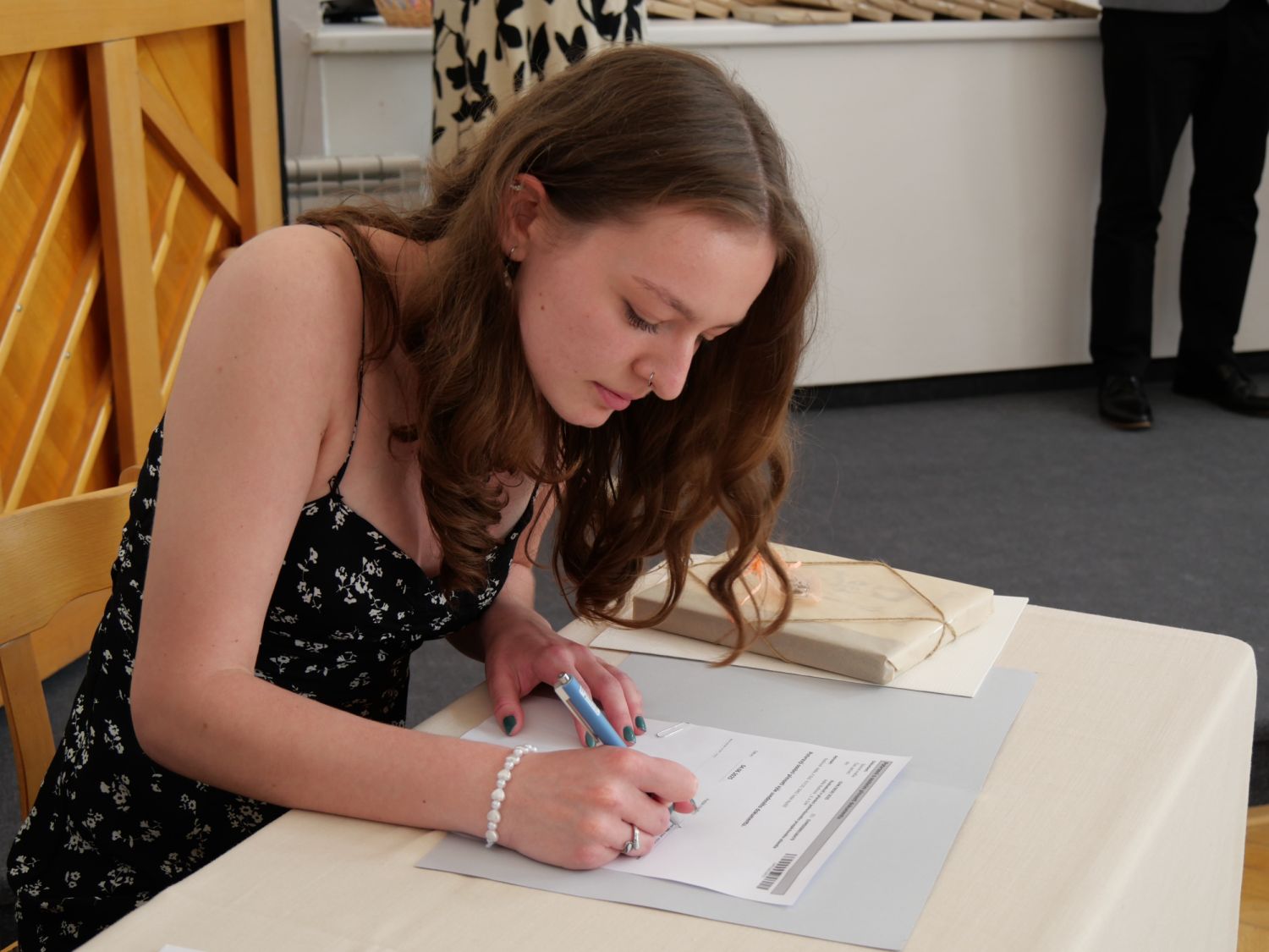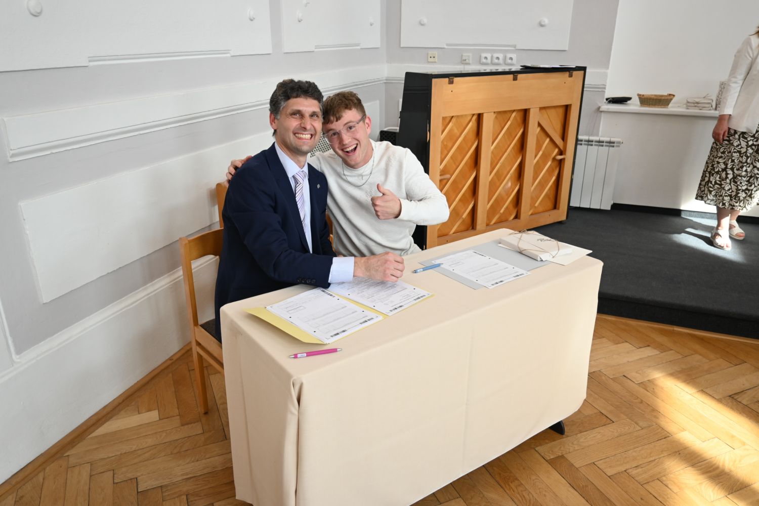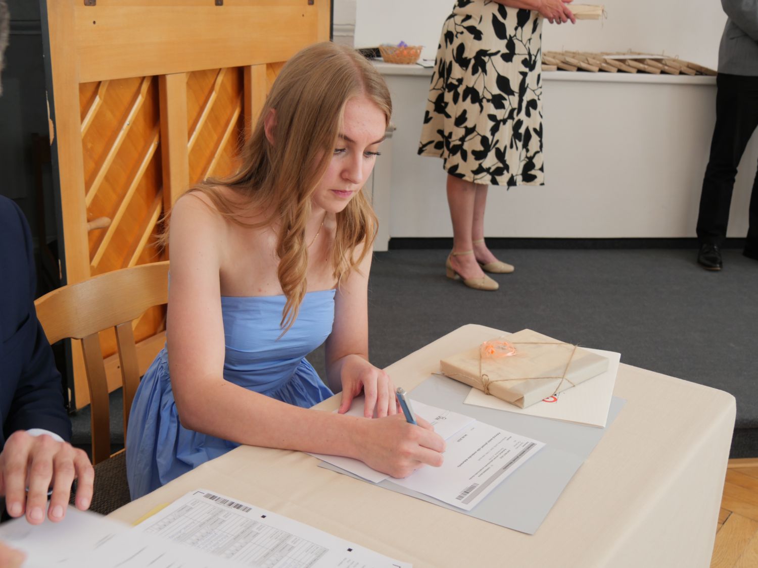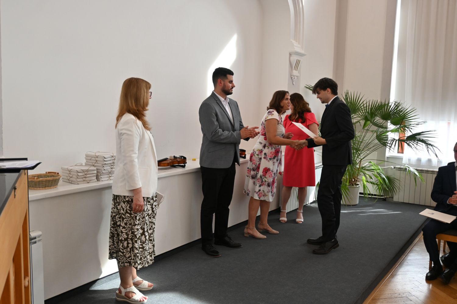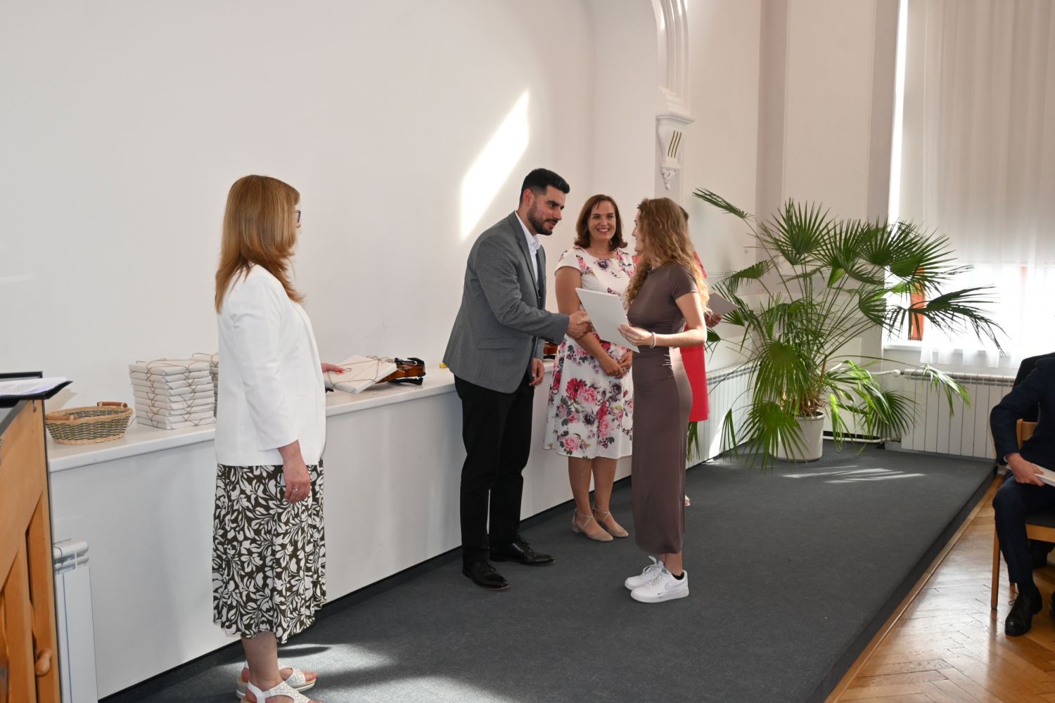 V aule školy absolventi převzali z rukou ředitelky Ilony Pokorné a starosty města Alexandrose Kaminarase ještě čerstvá maturitní vysvědčení. Šlo o 49 maturantů ze tříd 8. A a 4. C. Mimo maturitních vysvědčení dostali absolventi i vysvědčení za poslední ročník, dále pak drobný dárek a čtyři z nich stipendium za to, že po celou dobu studia prošli s vyznamenáním.