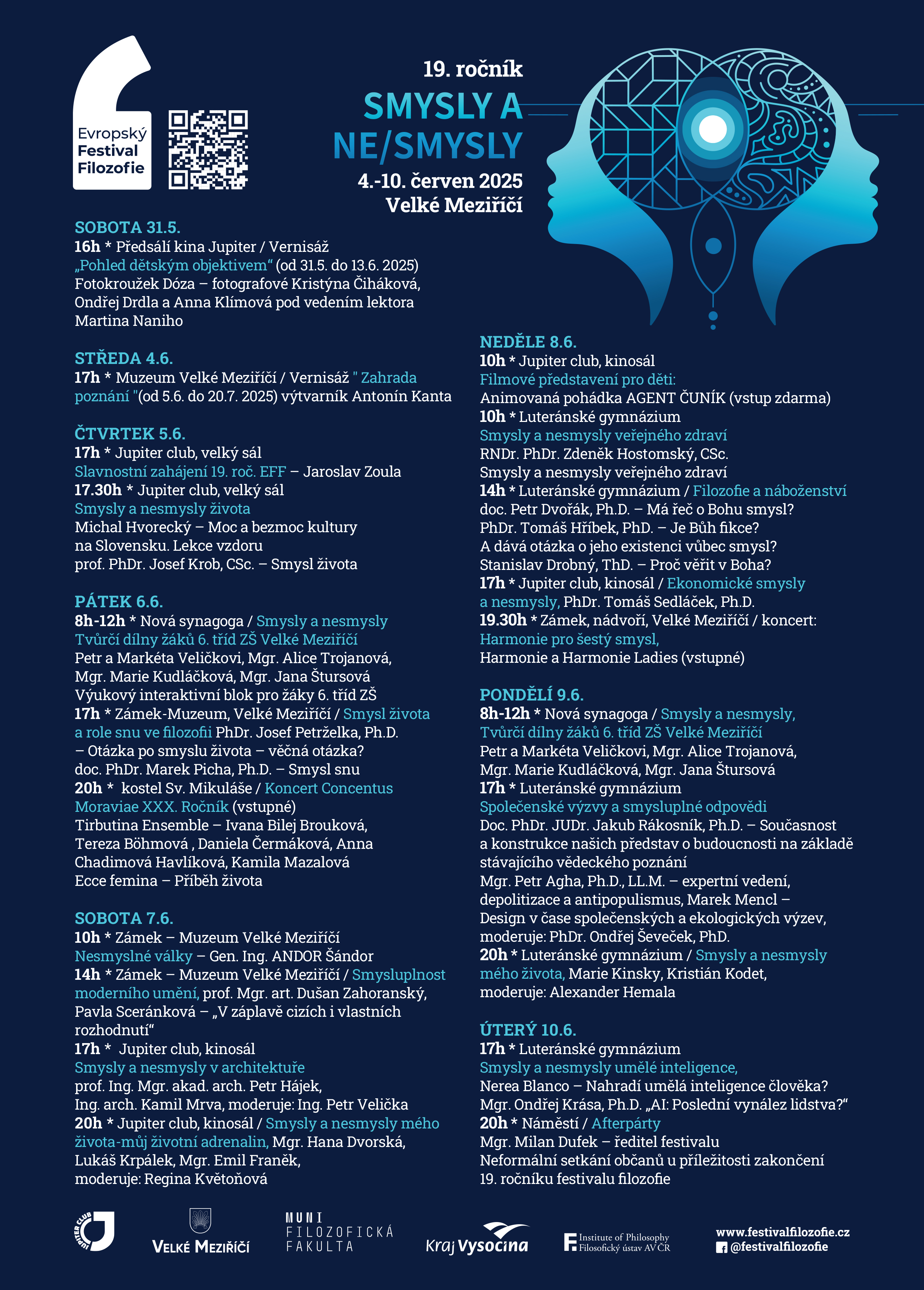 Ve čtvrtek 5. června byl oficiálně zahájen 19. ročník Evropského festivalu filozofie. Večerem provedl moderátor pořadu ČT Věda 24 Jaroslav Zoula. Na pódiu promluvili zástupci města, Kraje Vysočina, filozofických univerzit i samotného festivalu.