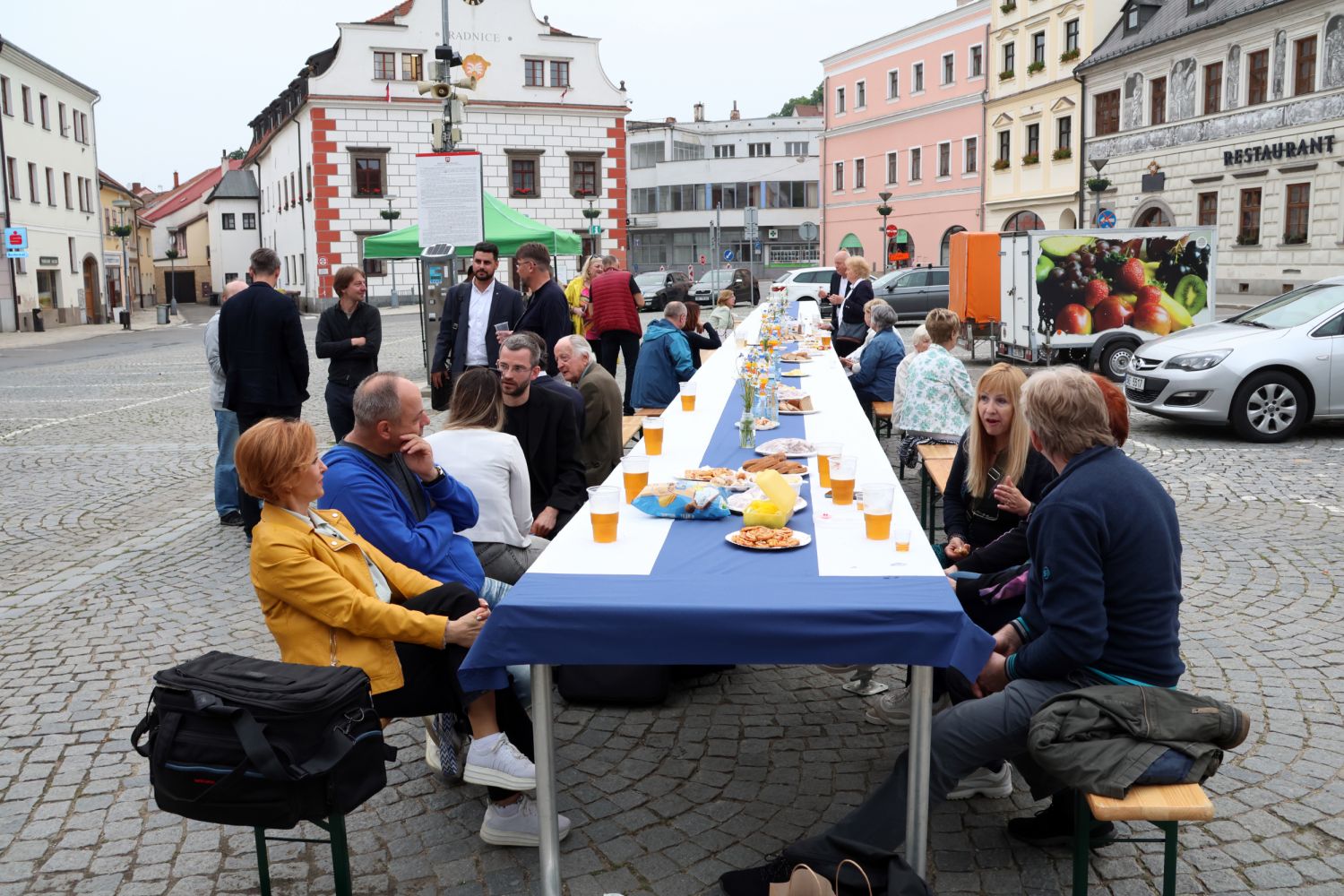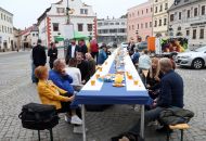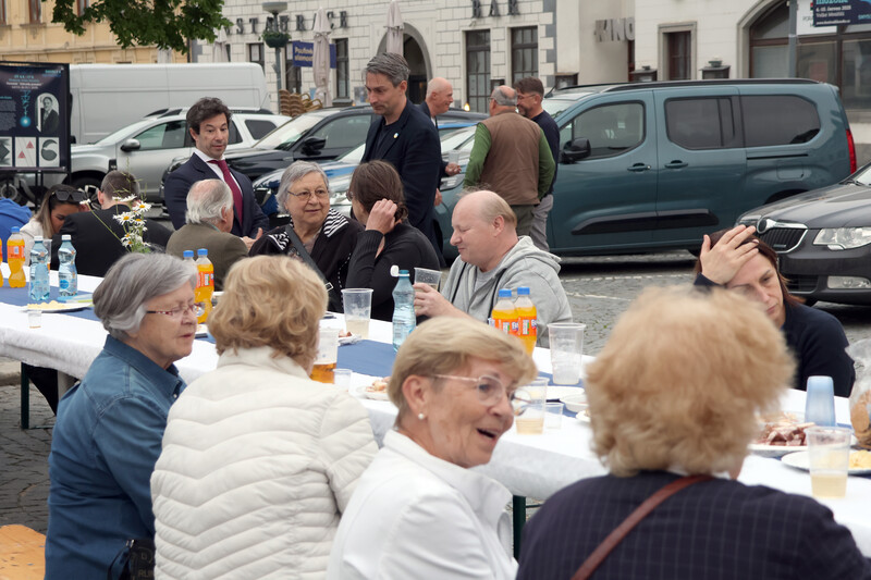 Evropský festival filozofie probíhal od 4. do 10. června v Jupiter clubu, luteránském gymnáziu, nové synagoze i v muzeu na zámku. A jaké to bylo? Fajn, třeba ta přednáška Kateřiny Šedé o smysluplnosti moderního umění byla moc zajímavá, bylo slyšet u stolu, který se táhl prostředkem náměstí. Nechyběly na něm vyhlášené festivalové buchtičky s tvarohem, povidly, mákem či ořechovou náplní a k tomu něco dobrého k pití. V úterý 10. června večer se kolem něj sešli lidé, aby si popovídali nejen o dojmech z uplynulých dní plných přednášek, besed, diskusí i kulturních akcí, ale třeba jen tak o všem možném, jednoduše na pokec. Sdělili si dojmy, pobavili se o filozofických myšlenkách, které zachytili, a nakonec přišlo na řadu i počasí, zahrádka, vnoučata nebo třeba nálezy archeologů, kteří teď v centru města dopisují chybějící díly historie města.
