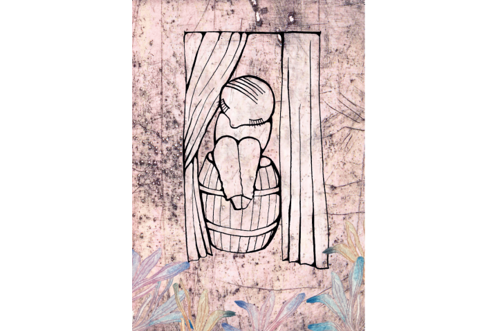 Pana syndika začalo pivo tlačit v žaludku, a tak odešel, aby si ulevil. WC tehdy v bytě nemívali. Při podobných sešlostech se to řešilo sudem, postaveným v kumbále, kam strkali i přebytečný nábytek. Dámy tam měly přístup zakázán. Pan syndikus se tedy odebral do vyhrazených prostor.