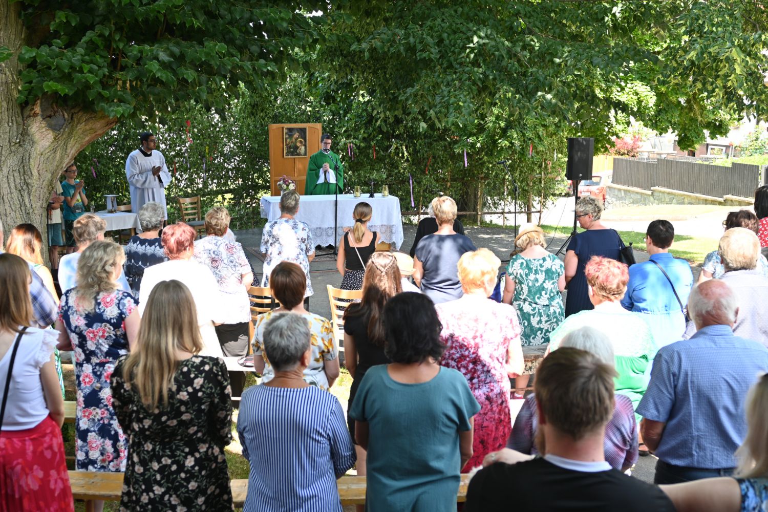 Grilování, zábava, kolotoče… Lhotky mají za sebou slunečný pouťový víkend, který završila nedělní mše svatá u kulturního domu.