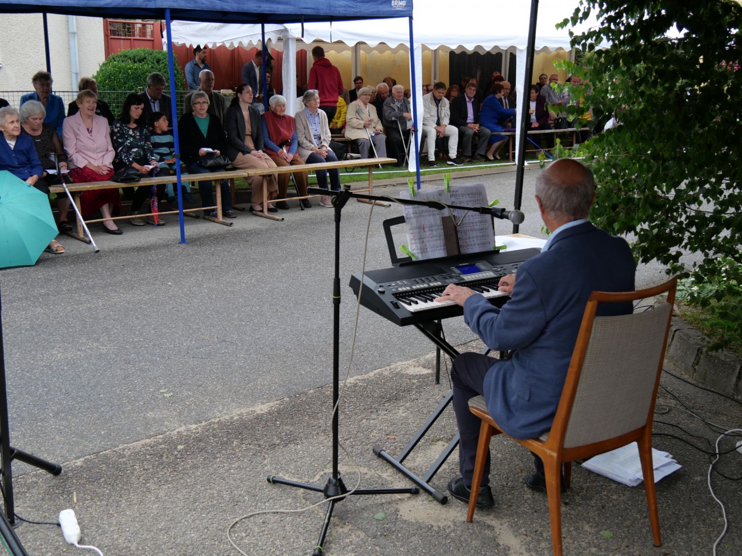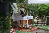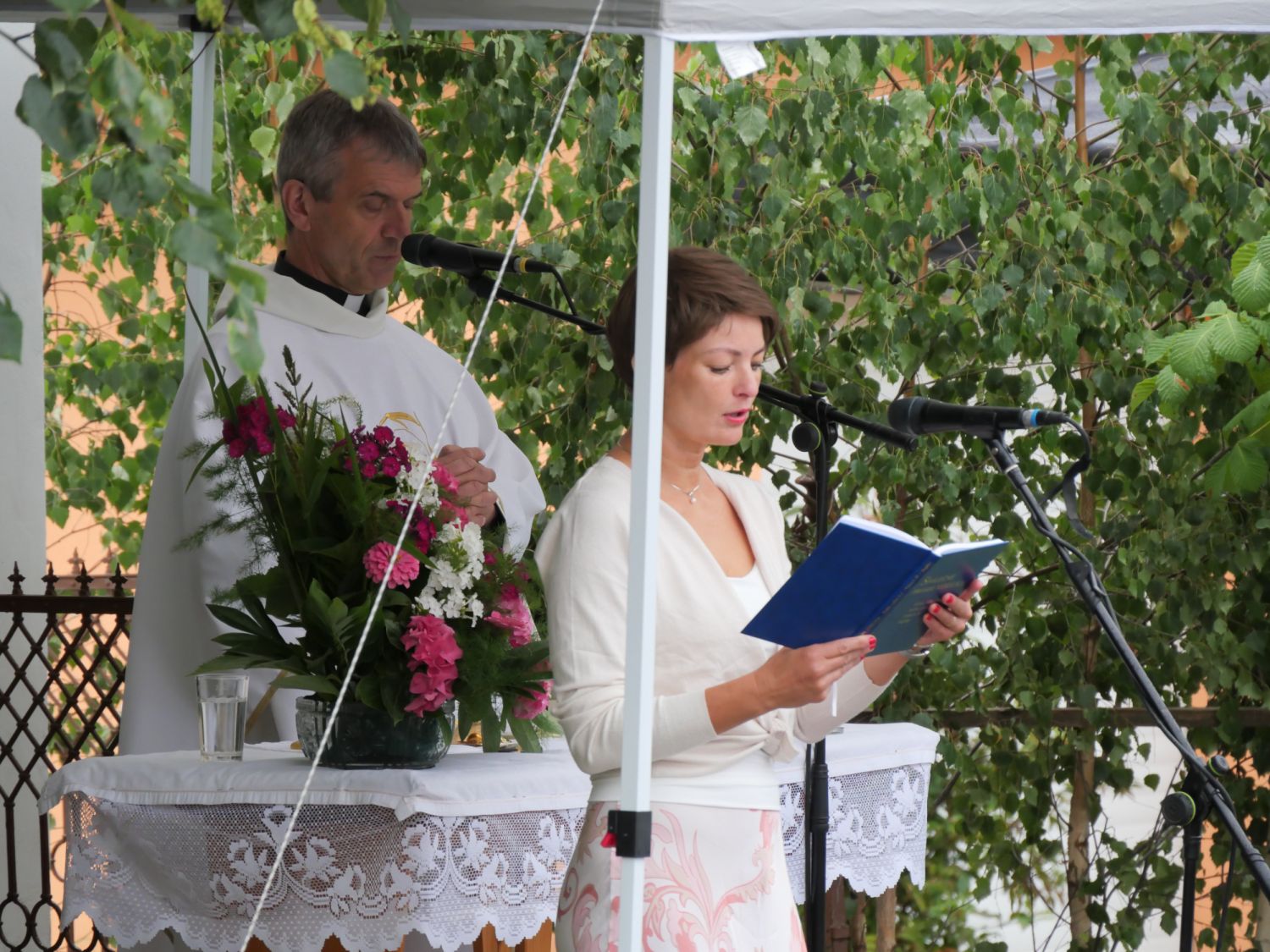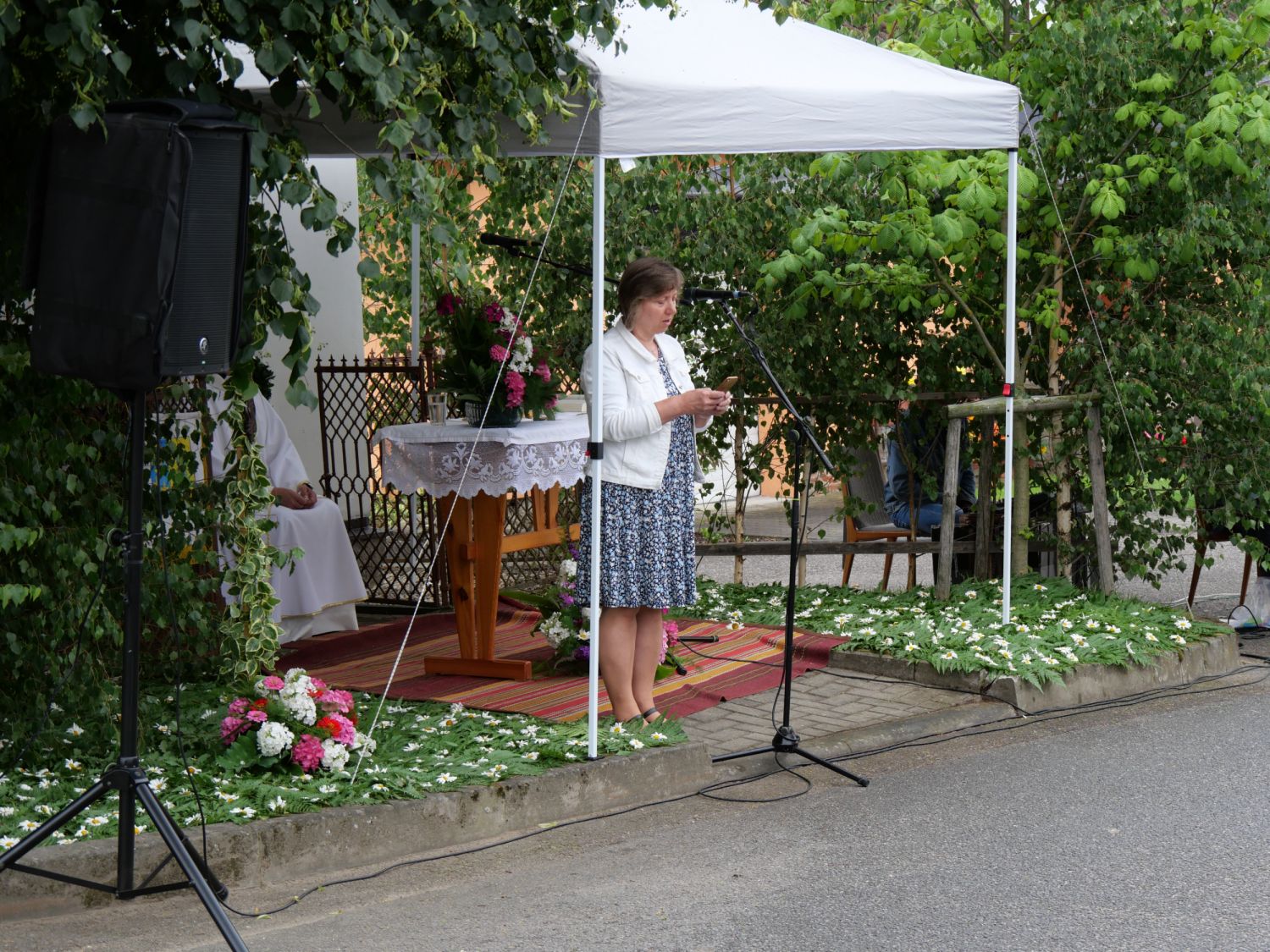 Mši svatou ve stínu vzrostlé lípy před kaplí sloužil velkomeziříčský děkan P. Jiří Kaňa, pro kterého to byla v Kúskách premiéra. Pouťovou atmosféru pak dokreslovala výzdoba kaple a okolí, které dominovaly především květinové koberce.