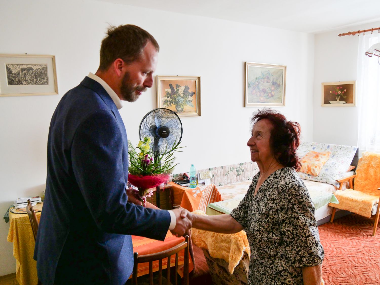 Místostarosta Martin Kaman oběma dámám nejen pogratuloval, s oslavenkyněmi také poseděl a v příjemném hovoru společně neformálně poklábosili o životě, o jeho strastech i slastech.