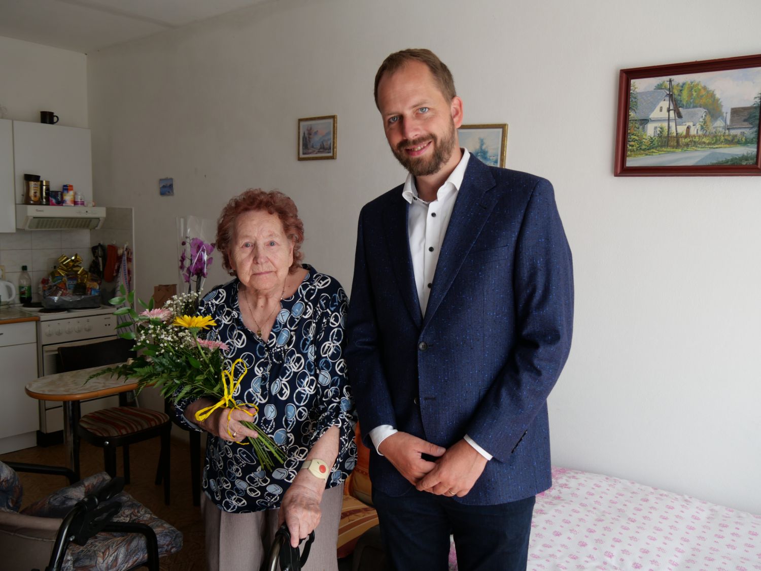 Obyvatelky Domu s pečovatelskou službou ve Velkém Meziříčí, Věra Láňková a Věra Rozmarinová oslavily významná životní jubilea. V pondělí 4. srpna dopoledne oběma dámám přišel pogratulovat místostarosta města Martin Kaman.