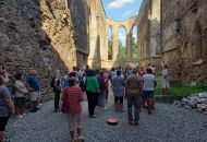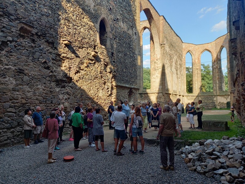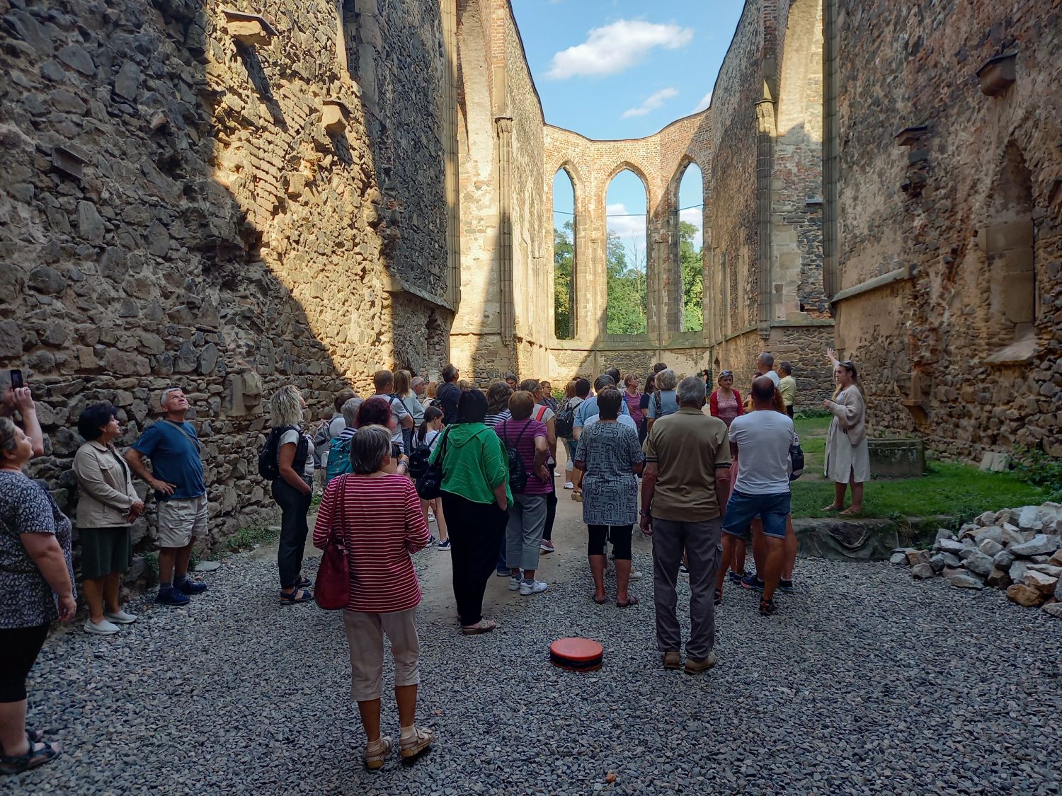 Klášter, resp. zříceninu kláštera jsme navštívili i na třetí zastávce. Tuto unikátní stavbu z roku 1181 se postupně daří konzervovat a příležitostně ji využívají filmaři. Trosky kláštera Rosa coeli v Dolních Kounicích působí na citlivější jedince svou pozitivní energií. Už jen pouhých pár minut pobytu v magických prostorách syrové gotiky bývalého kláštera vám vylepší náladu.