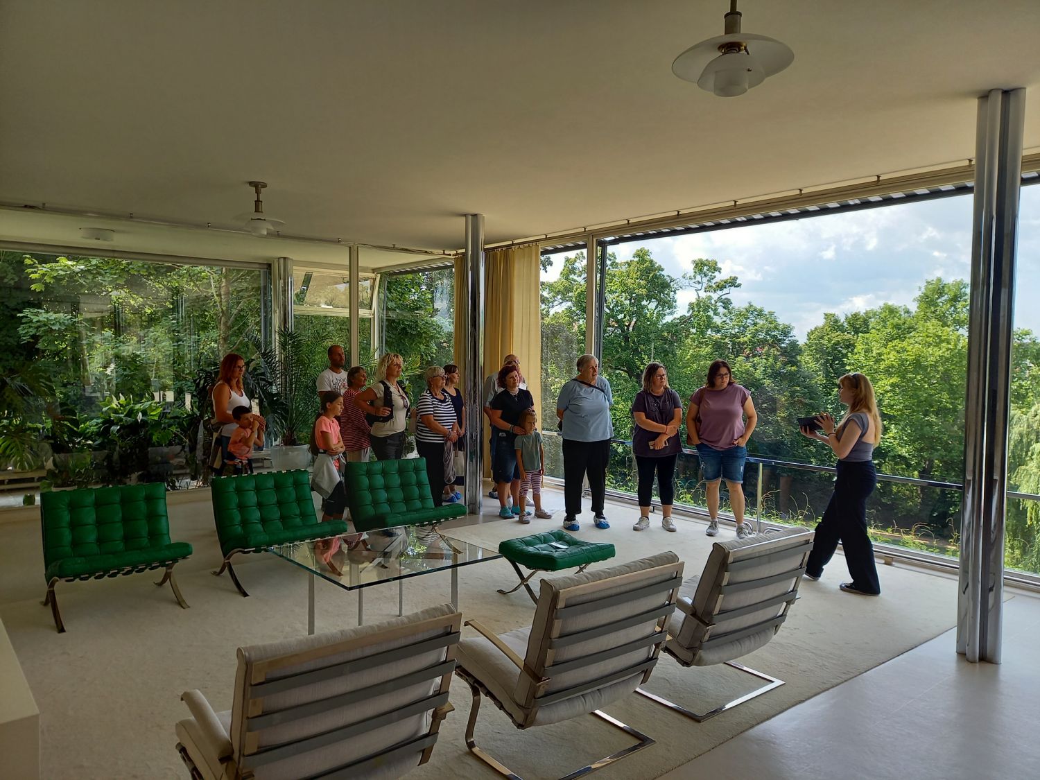 Druhý letošní martinický zájezd se konal netradičně ve středu 6. srpna. Chtěli jsme navštívit Vilu Tugendhat a zajistit vstup do této památky je velmi obtížné. Navíc, našeho zájezdu se účastnilo 48 osob a skupinovou prohlídku o víkendu pro tolik návštěvníků zajistit také nelze. A tak jsme se museli rozdělit do tří skupin, abychom mohli tuto památku UNESCO navštívit.