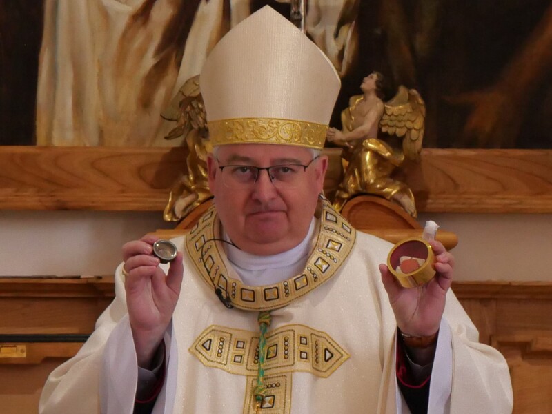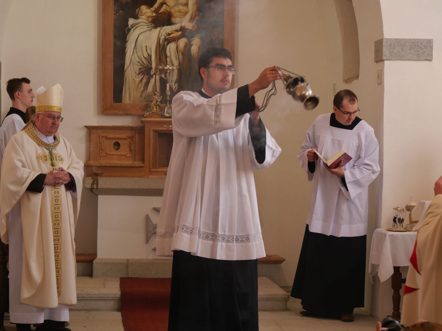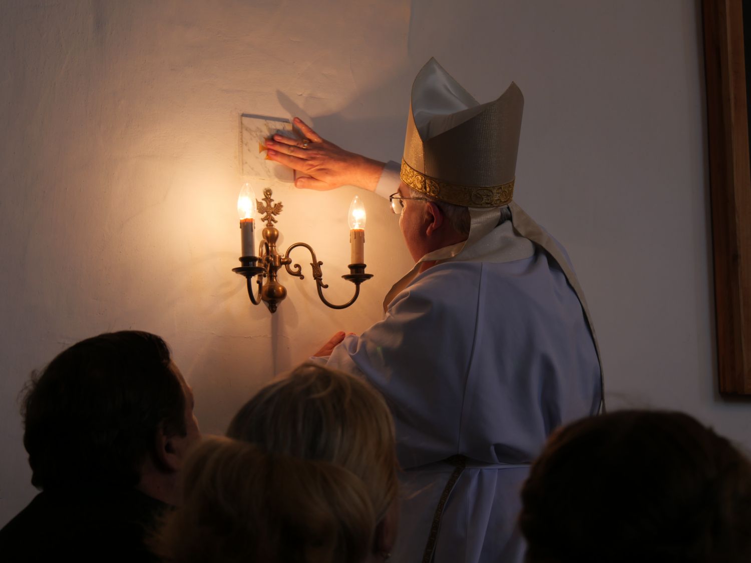 „Církev neslavila eucharistii v prvotních dobách jenom v domech, ale pravidelně se scházela také na hrobech mučedníků. Právě tam se začaly stavět kamenné oltáře. Ty měly podobu rakve nebo rovu. Bylo-li to možné, vkládali první křesťané do oltáře přímo tělo mučedníka. Tyto oltáře se poznají tak, že mají na přední straně zamřížovaný otvor. Od sedmého století bylo zvykem zasvěcovat kostely některému ze světců. Vycházelo to právě z toho právě z toho, že se první křesťané scházeli na hrobech mučedníků. Když už mučedníci nebyli, přenesl se tento zvyk do zasvěcení kostela, a také do toho, že do oltáře se ukládala relikvie. Ty to relikvie se vkládaly do oltářní desky neboli mensy v místě, kde kněz líbal oltář," osvětlil historii vkládání ostatků svatých do oltářů biskup Konzbul.