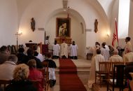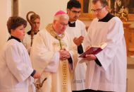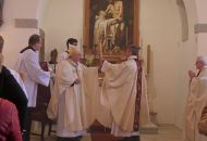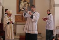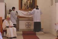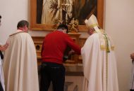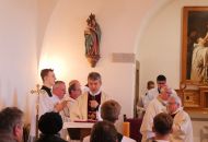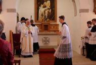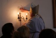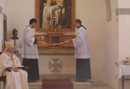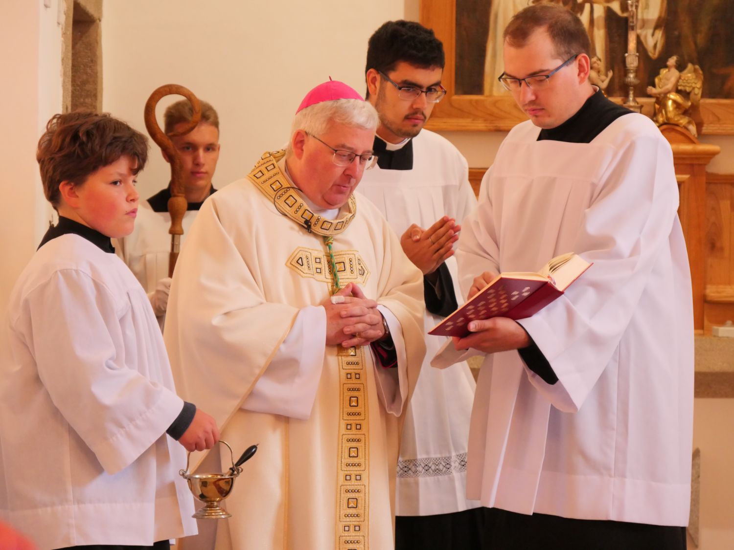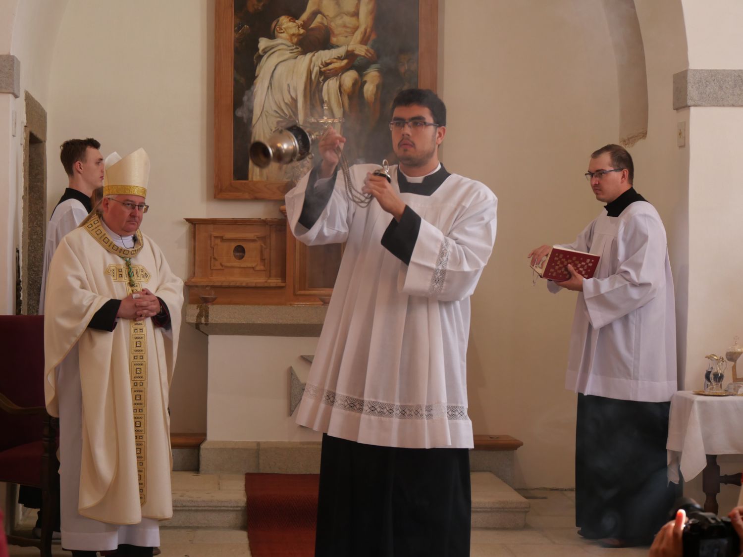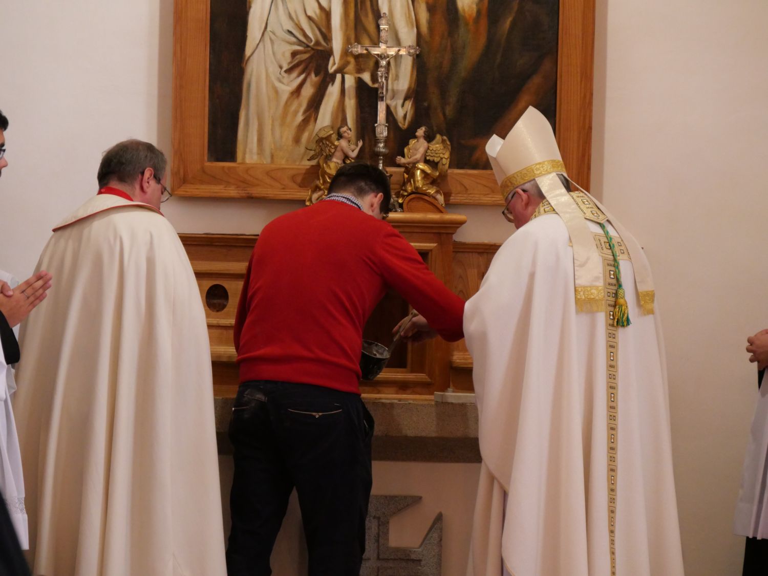 „Církev neslavila eucharistii v prvotních dobách jenom v domech, ale pravidelně se scházela také na hrobech mučedníků. Právě tam se začaly stavět kamenné oltáře. Ty měly podobu rakve nebo rovu. Bylo-li to možné, vkládali první křesťané do oltáře přímo tělo mučedníka. Tyto oltáře se poznají tak, že mají na přední straně zamřížovaný otvor. Od sedmého století bylo zvykem zasvěcovat kostely některému ze světců. Vycházelo to právě z toho právě z toho, že se první křesťané scházeli na hrobech mučedníků. Když už mučedníci nebyli, přenesl se tento zvyk do zasvěcení kostela, a také do toho, že do oltáře se ukládala relikvie. Ty to relikvie se vkládaly do oltářní desky neboli mensy v místě, kde kněz líbal oltář," osvětlil historii vkládání ostatků svatých do oltářů biskup Konzbul.