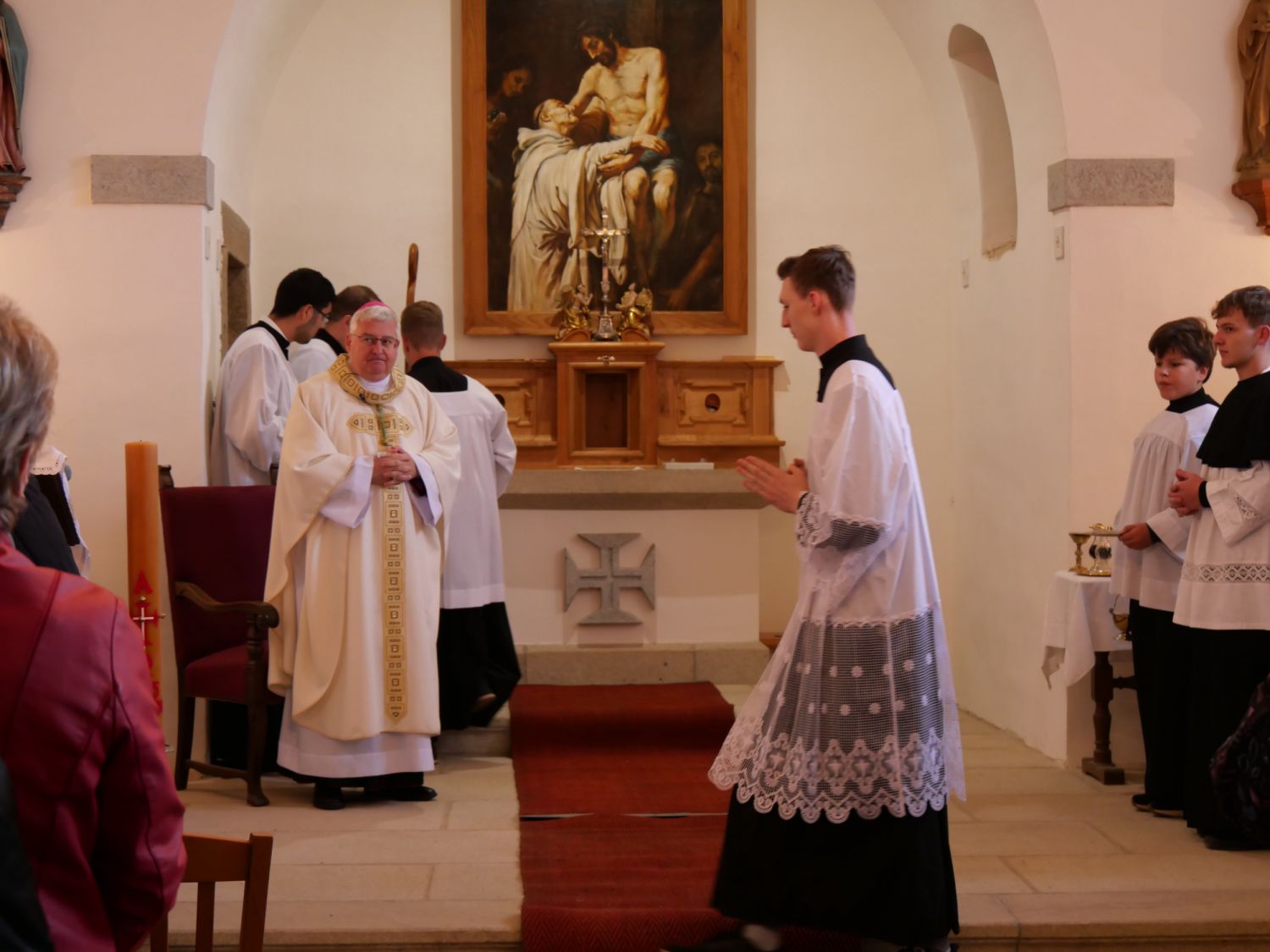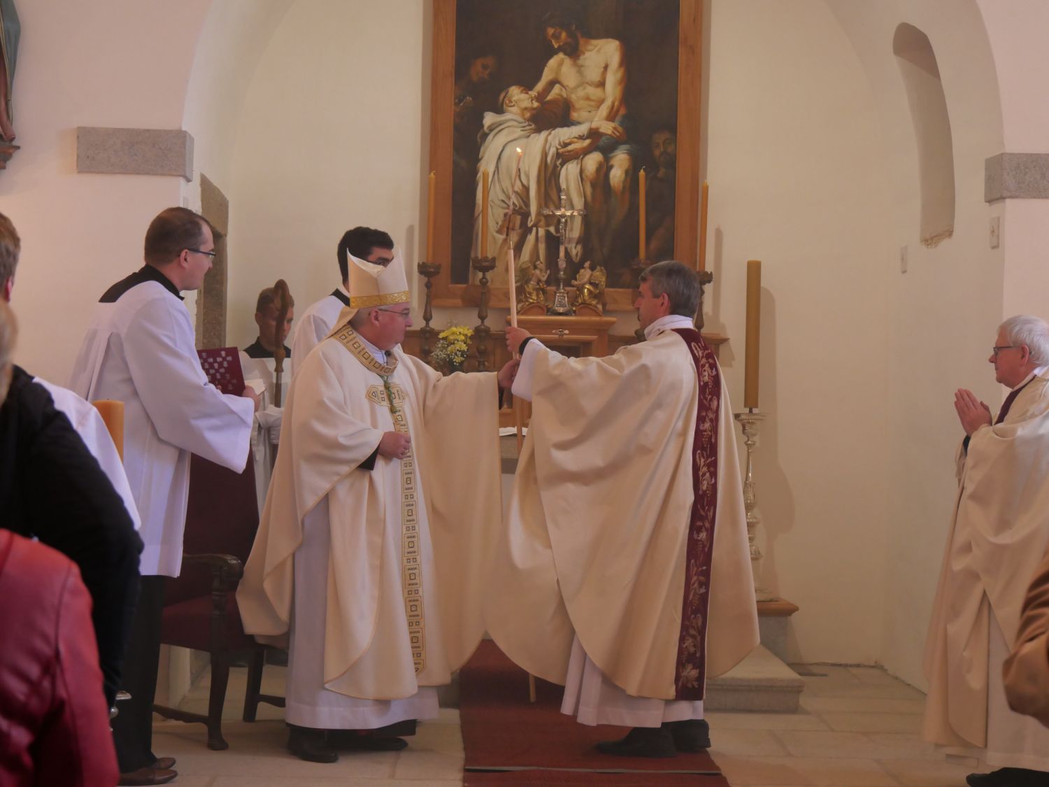 Na první pohled zchátralý zámek ve Stránecké Zhoři žije, žije uvnitř. V sobotu 18. října se v jeho útrobách konala slavnost svěcení kaple zasvěcené sv. Bernardovi z Clairvaux. Konvent řádu rytířů Kristových si k aktu svěcení pozval brněnského biskupa Pavla Konzbula. Nechyběl ani děkan velkomeziříčský Jiří Kaňa.