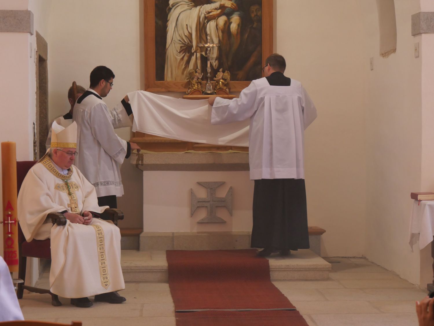 Ostatky byly do oltáře vloženy v zapečetěných schránkách a hned po vložení byl prostor v oltáři zazděn. Biskup jej poté pomazal vzácným olejem a na to byl oltář pokryt rouchem napuštěným včelím voskem a lněným plátnem.