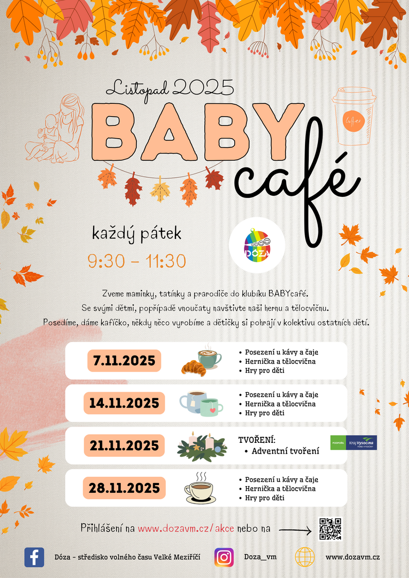 Listopad je tu a s ním i další setkání v BabyCafé v Dóze. Pro všechny maminky, tatínky, babičky i dědečky s malými dětmi je připravené dopoledne plné pohody, tvoření a společného času.