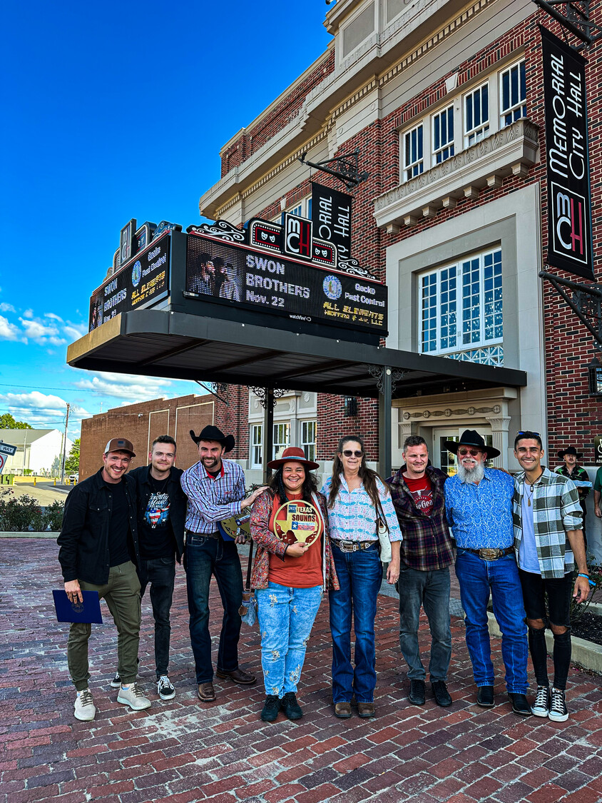 Je to taková velká, kovová placka. Jinak je to ocenění festivalu Texas Sounds International Country Music Awards. Tato soutěž na základě přihlášených interpretů nominuje několik účastníků z celého světa a ti pak fyzicky přijedou do Texasu, za celé tři dny proběhne x vystoupení a po těchto třech dnech následuje závěrečné vyhlášení festivalu i s oznámením výsledků, kdo jak dopadl. My jsme si sem přijeli zahrát a načerpat nové zkušenosti. Ani se nám nesnilo o tom, že získáme cenu nejvyšší.