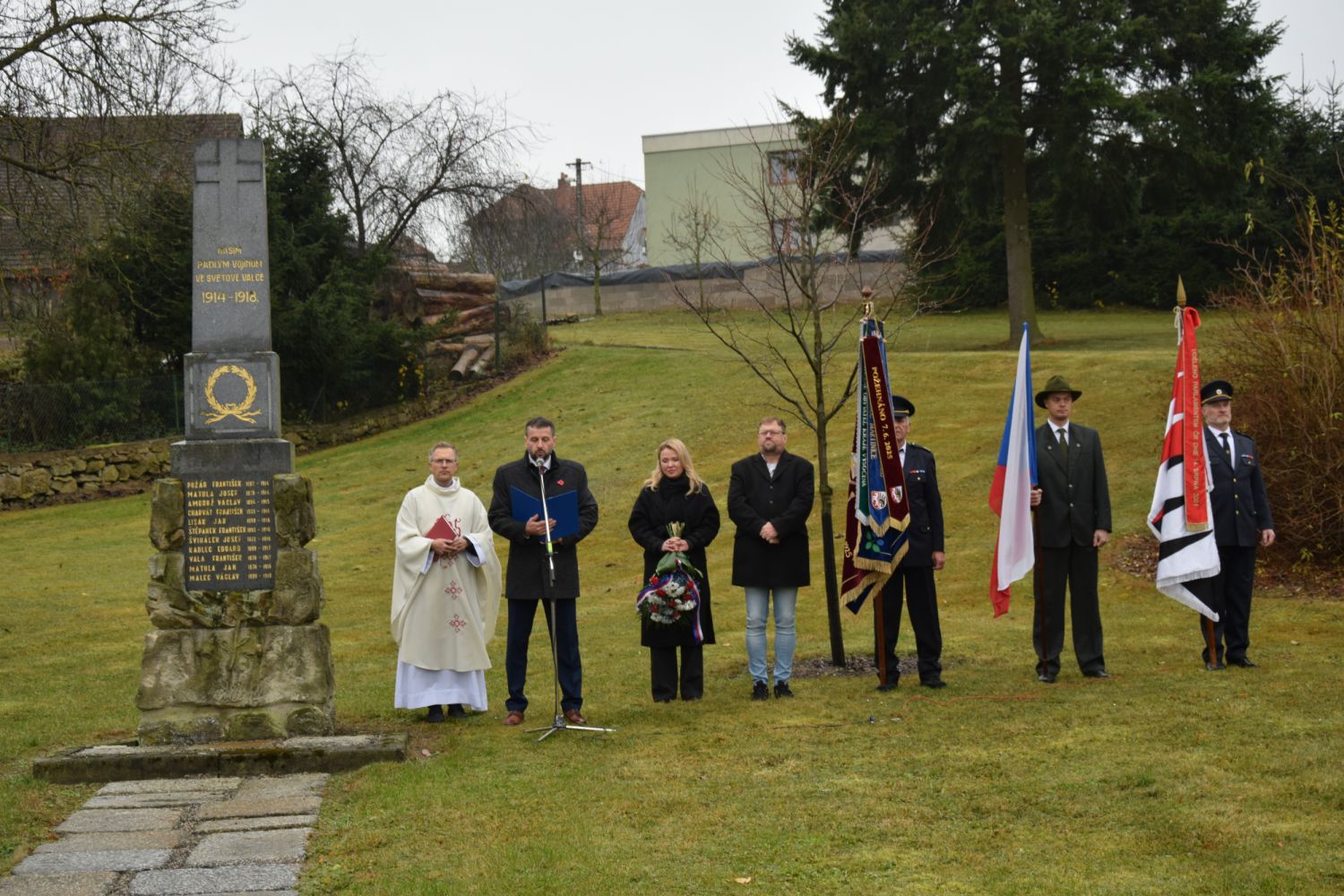 Abychom vzdali hold všem, kteří bojovali na některé z válečných front, rozhodli jsme se, vydat publikaci o našich předcích a připomenout tak věci, možná už dávno zapomenuté. Představení této válečné kroniky se ujal starosta obce Michal Drápela a její autor Petr Chňoupek. Vzácným hostem byla poslankyně Monika Oborná, která pozdravila všechny přítomné a společně se starostou uctili památku padlých vojínů.