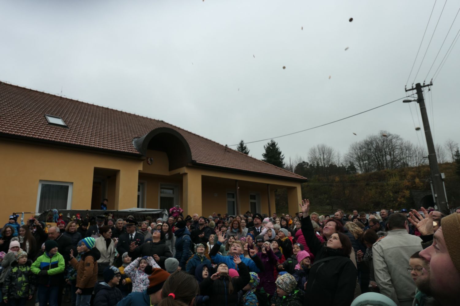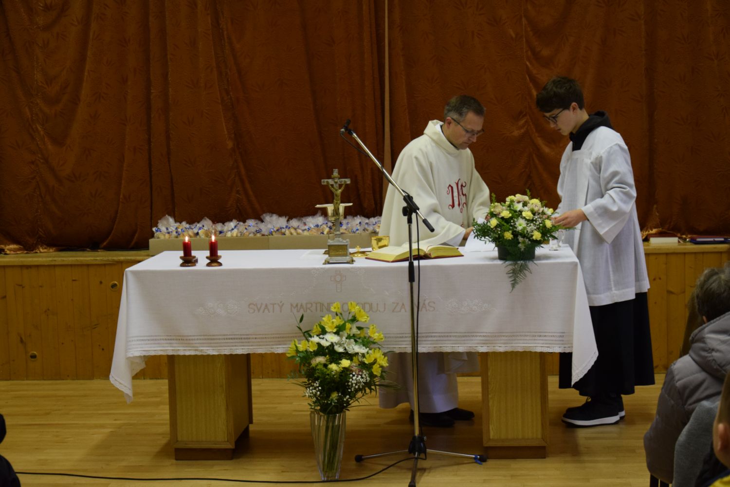 Mši svatou v kulturním domě sloužil P. Mgr. Ing. Tomáš Zámečník, farní vikář z Katedrály sv. Petra a Pavla v Brně. Svatý Martin přijel na svém bílém koni i tentokrát. Po skončení mše se objevil v doprovodu svého panoše, a především děti se těšily na jeho příjezd a zlaté penízky, kterými je nakonec obdaroval. Martinské rohlíky byly i letos krásně vypečené a pouť se vydařila na jedničku. Velké poděkování patří všem, kteří pouť připravili a podíleli se na tom, že tato tradice je stále živá.