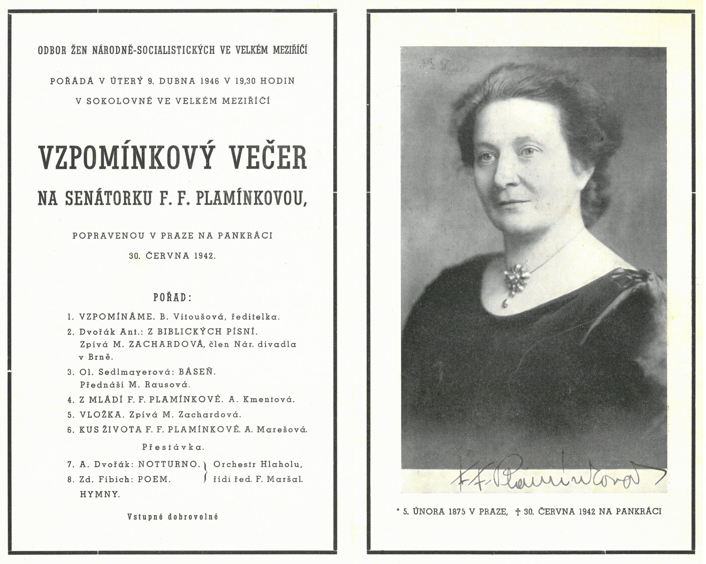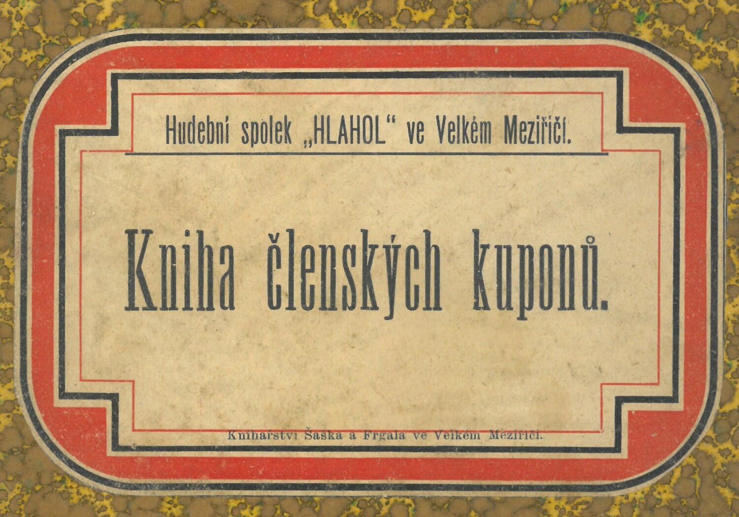 Kniha vytištěná firmou Šašek a Frgal ve Velkém Meziříčí obsahuje výměr poplatků pro zakládající i přispívající členy Hudebního spolku Hlahol. Prostřednictvím růžově zbarvených kuponů se zde setkáváme se známými velkomeziříčskými jmény, jako jsou např. majitel parního mlýna Jan Čermák, profesor rolnické školy Václav Myslivec, továrník Karel Jelínek aj. Něžné pohlaví zde zastupují např. slečna učitelka Marie Radiměřská, zakladatelka Škol Světlá Růžena Píčmanová či vdova po uznávaném lékaři Amálie Skřivanová.