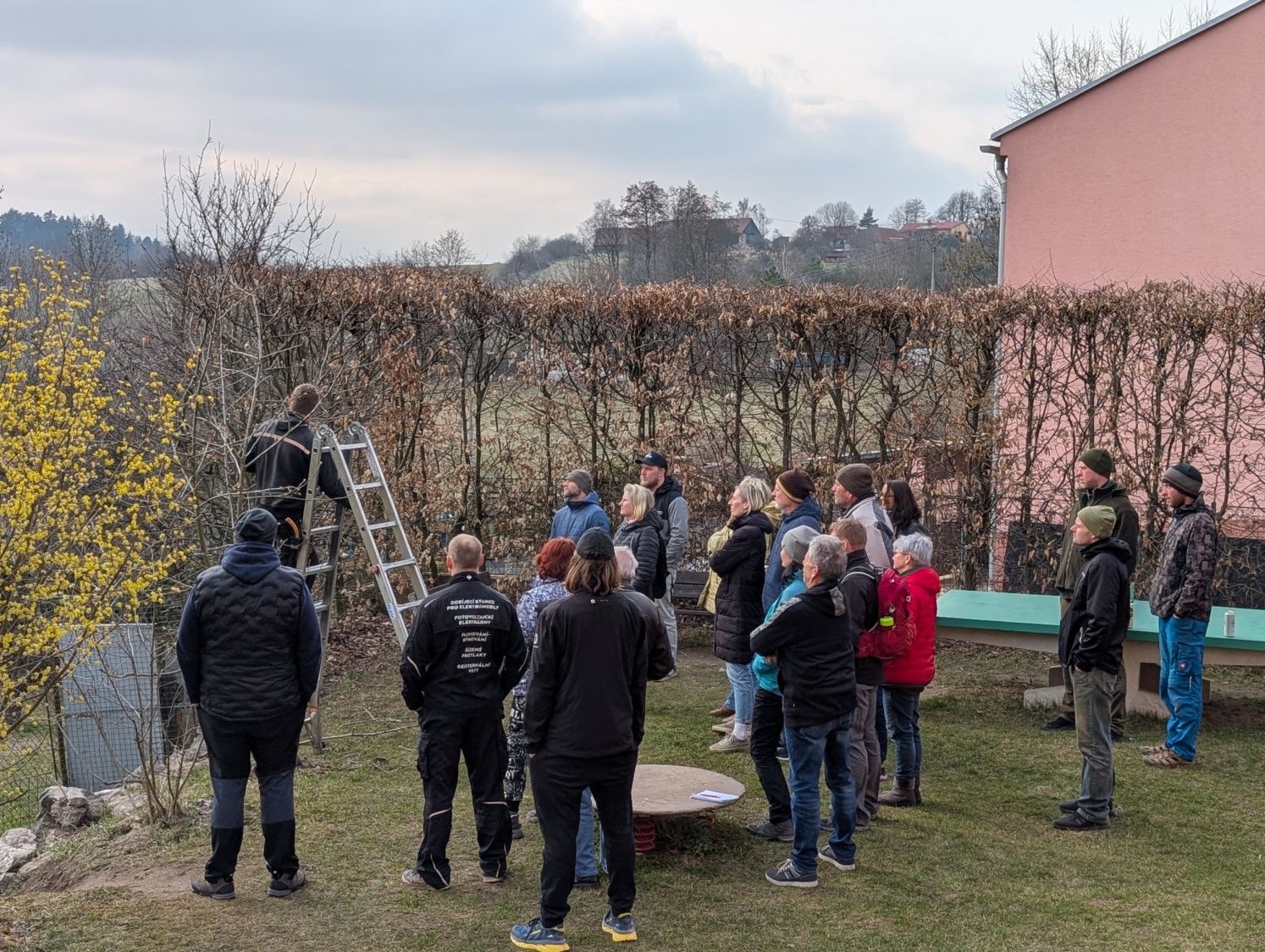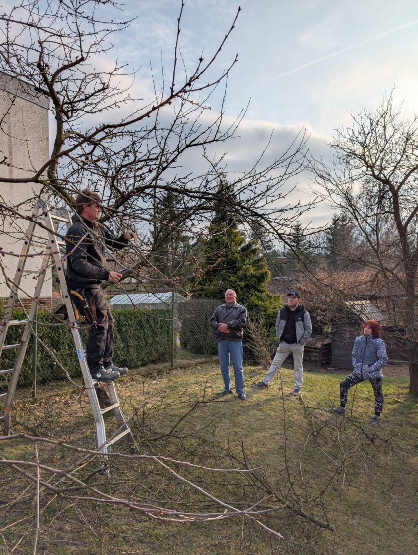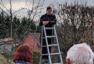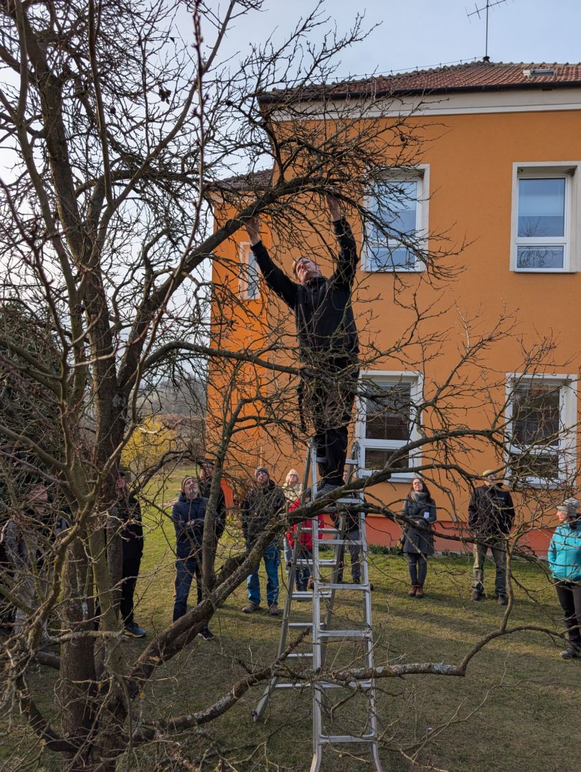 Zájemci se v sobotu 14. března odpoledne sešli v kulturním domě ve Lhotkách, kde si nejprve vyslechli základní informace proč, jak a kdy řezat ovocné stromy, a zhlédli přitom řadu fotografií z terénu. Jan Oulehla zdůraznil důležitost výchovného řezu stromků v prvních letech po výsadbě, který je zásadní pro správné založení koruny. Věnoval se i řezům prosvětlovacím a zmlazovacím. „Prosvětlení koruny zajistí lepší úrodu ovoce, prevenci chorob i lámání větví pod úrodou či námrazou,“ připomněl sadař. Následovala vycházka do terénu ke starším stromům v zahradě školy i k mladé výsadbě u žlabu, kde lidé zhlédli praktické ukázky řezu.