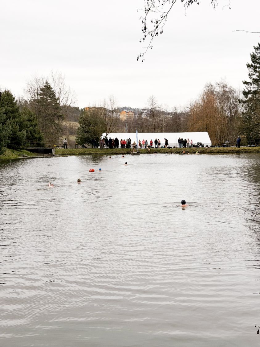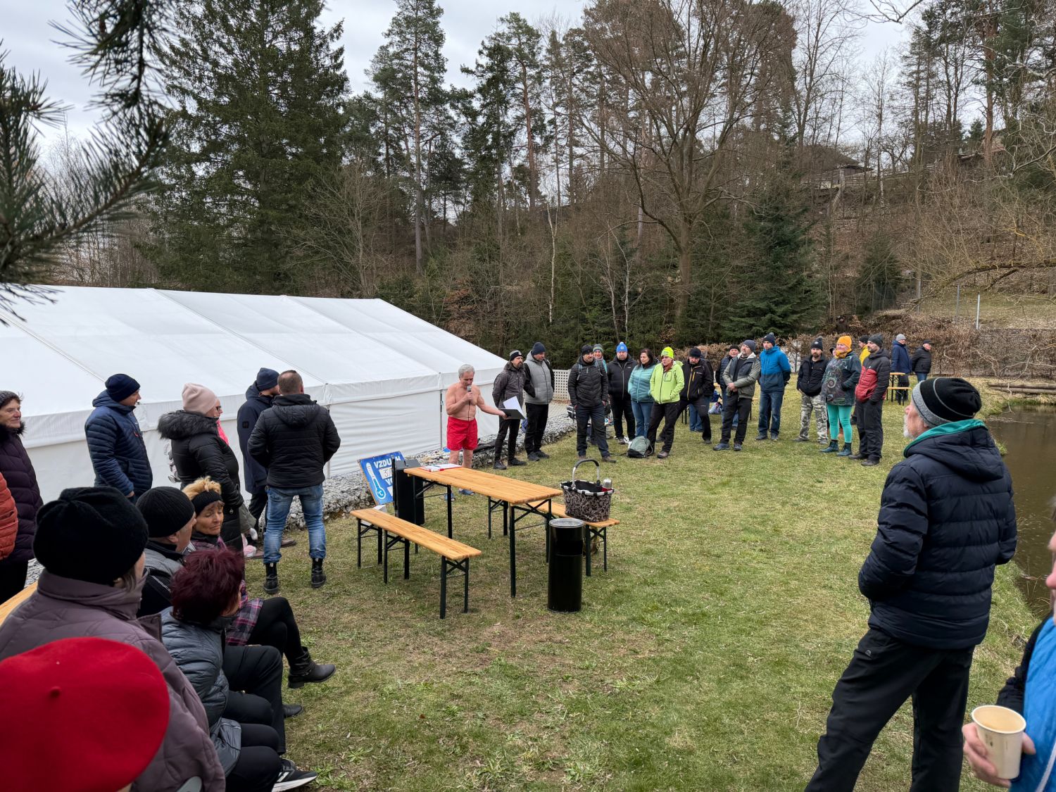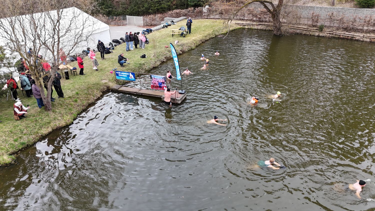 Do studené vody se ponořilo celkem 19 odvážných účastníků. Za svůj výkon si pak mohli užít opékání špekáčků a zahřát se teplými nápoji.