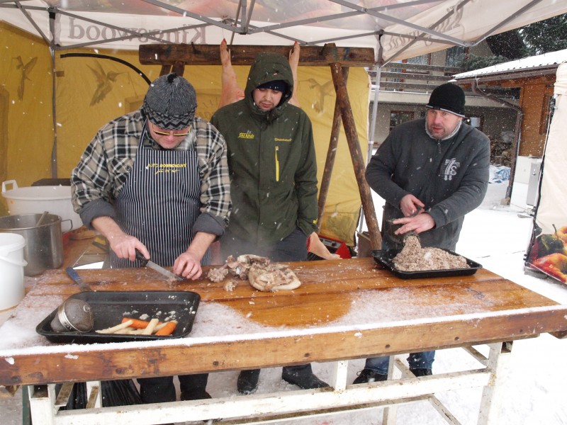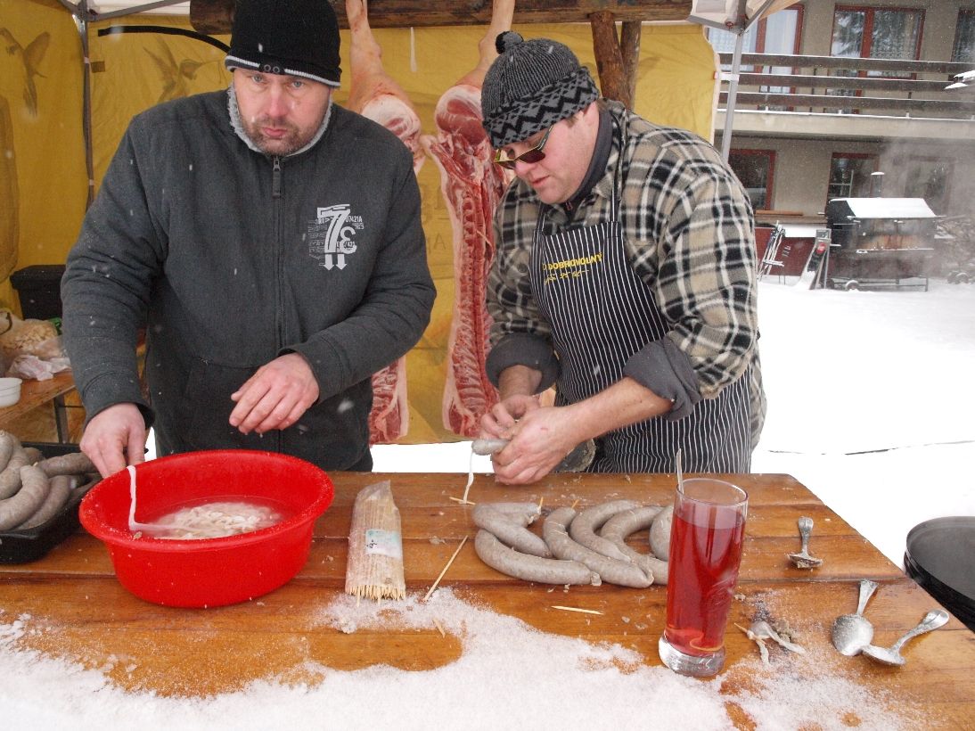 Nejen lyžaři, ale i ti, kteří si na Fajťák vyrazili jen tak na vycházku, si výjimečný den mohli užít. Ne každý má možnost dostat se na nějakou rodinnou zabijačku. Takže ta na sjezdovce byla pro mnohé jedinečnou příležitostí nahlédnout řezníkovi pod ruce, jak bourá maso či zručně plní střívka prejtem a špejluje jitrnice. A pak ochutnávka, takřka rovnou z kotle na talíř. Ta nepochybně zahřála i toho nejpromrzlejšího lyžaře. A jako bonus k dobrému jídlu a pití zahrála kapela Žízeň ze Lhotek.