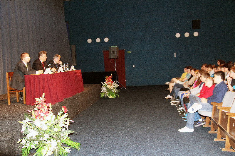 Beseda proběhla v úterý 26. května v kinosále Jupiter clubu a připravili ji pracovníci domů děti a mládeže. Ing. Radovan Necid, Josef Komínek a ing. Marek Švaříček střídavě zodpovídali předem připravené dotazy žáků z devátých tříd. Dotazy se převážně dotýkaly témat: parkování, hřišť u ZŠ Oslavické a v Olší nad Oslavou, oprav krajských silnic, vážení nákladních automobilů, cyklostezky, měsíčník Velkomeziříčsko a nezávislost jeho příspěvků, kultura a kulturní léto, solární energetika, kruhový objezd… a mnoha dalších. -red-