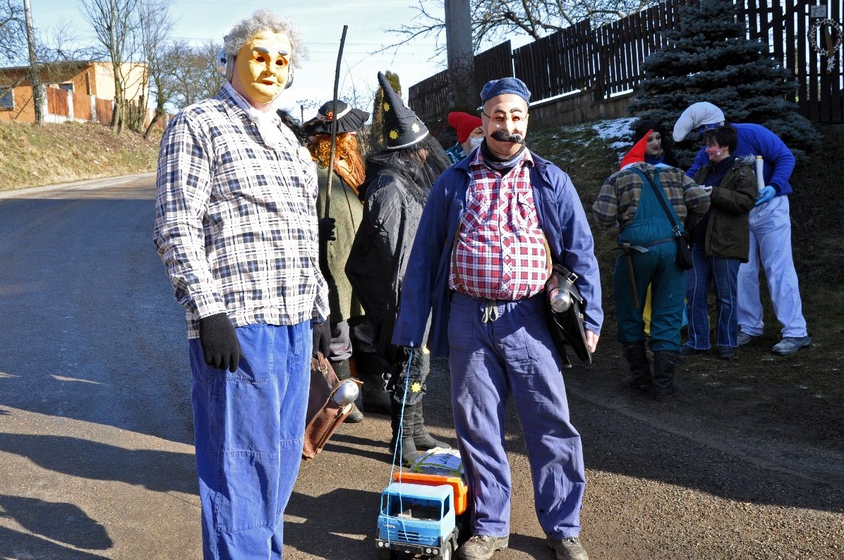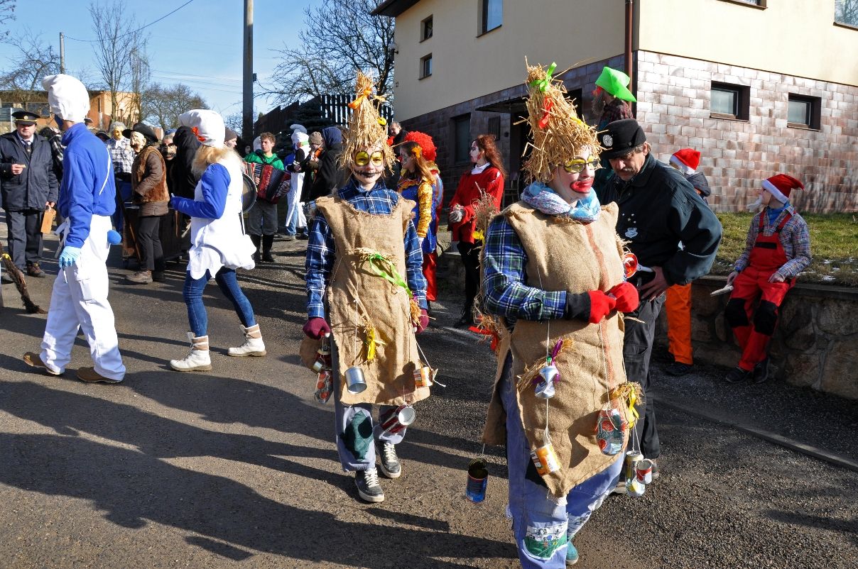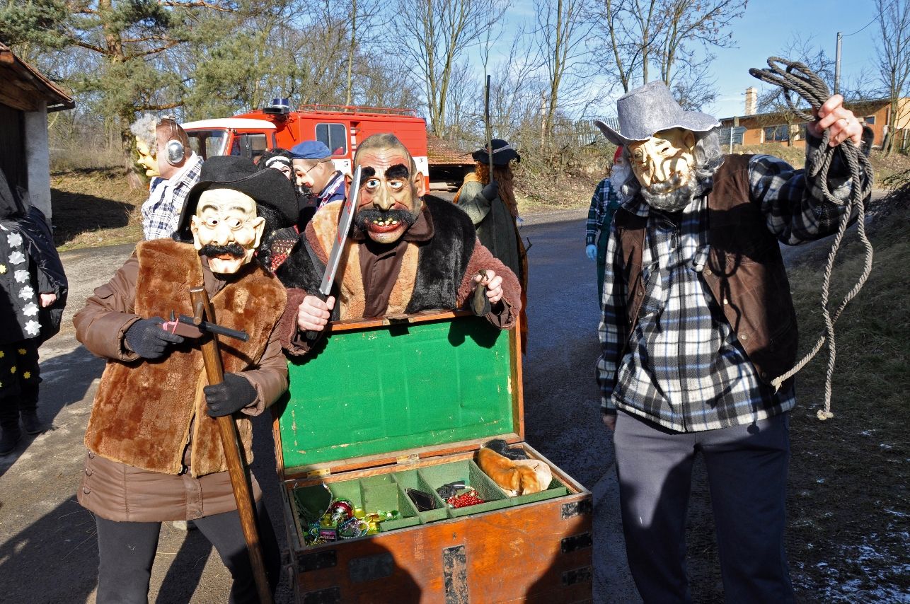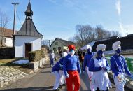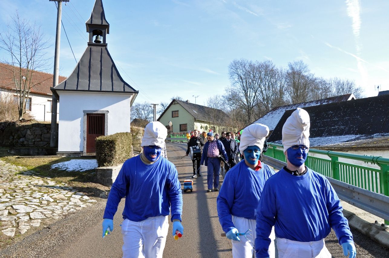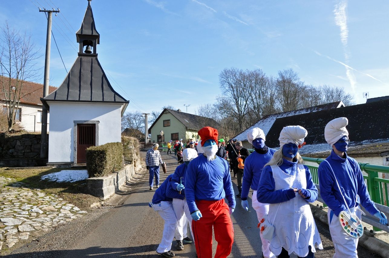Zbojníci s noži a truhlou lupu, šmoulí rodinka, tlupa trpaslíků, strašáci z pole, šašci a samozřejmě i muzikanti a další vyrazili v průvodu maškar skrze Lhotky, Kúsky a Dolní Radslavice v sobotu dopoledne.