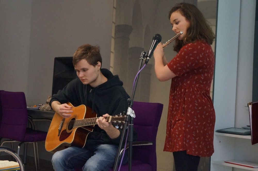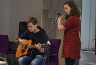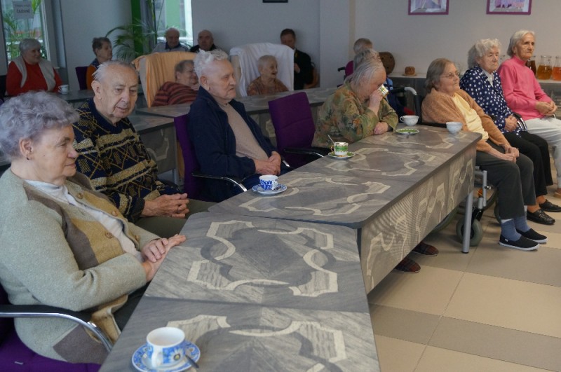 Příjemnou atmosféru skoro hodinového programu dotvářela nabídka z pěti druhů čajů a drobné dárky, které měla na závěr pro seniory, kteří navštěvovali hudební dílnu, připravené autorka projektu Barbora Kytnarová.