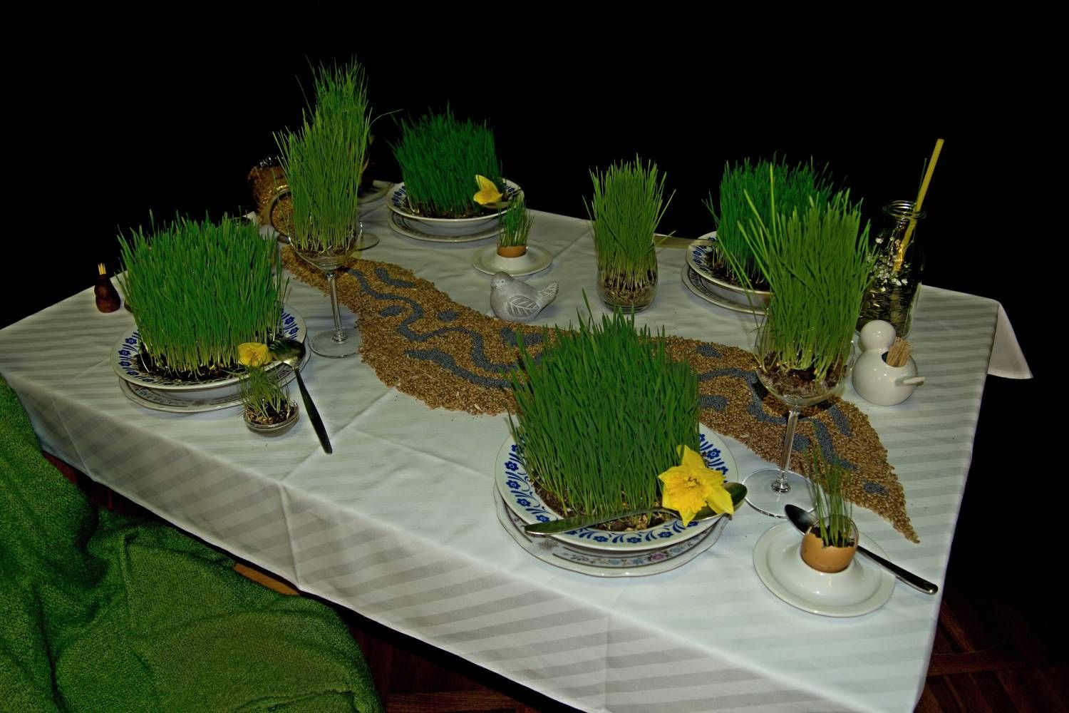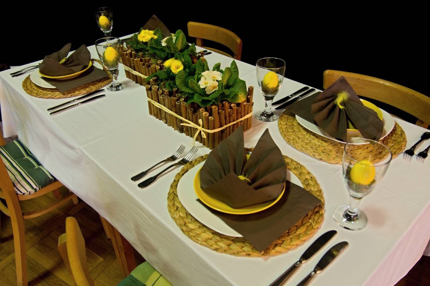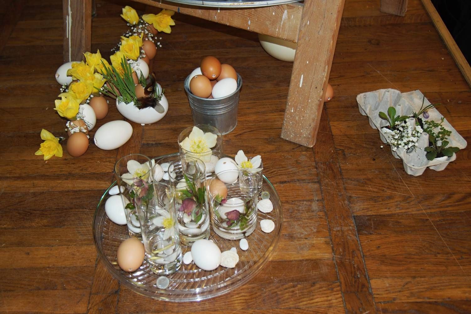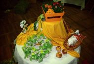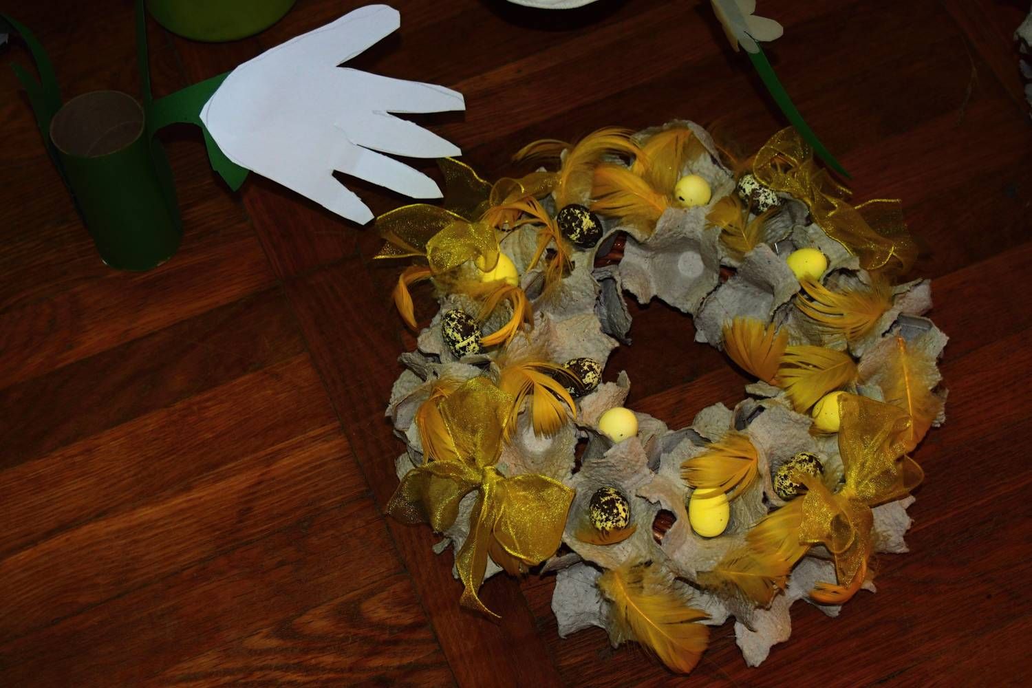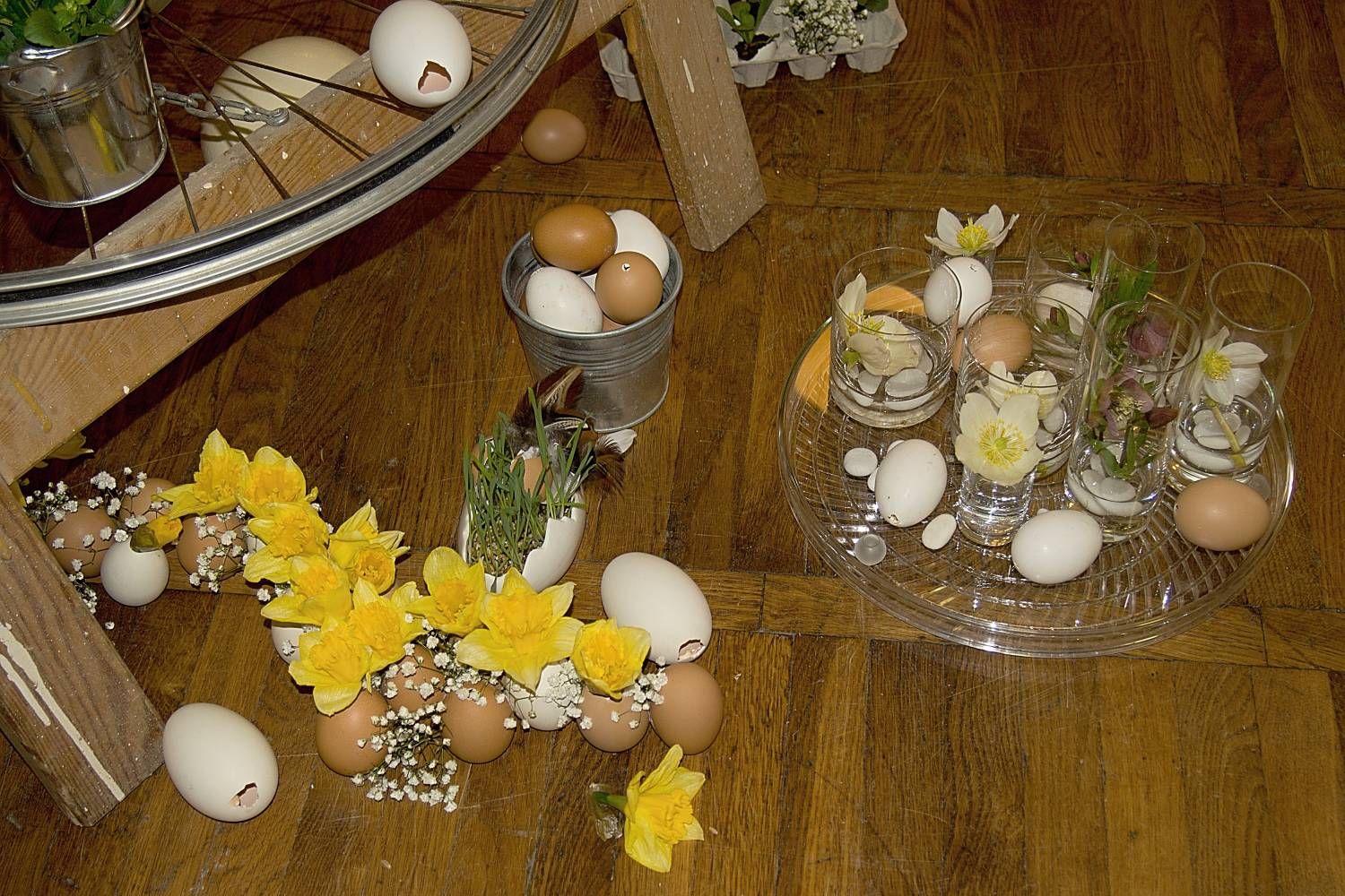 Pódium sokolovny hostilo velikonoční jarní výstavu. Při vstupu na jeviště jsme míjeli Moranu, bohyni zimy a stáří našich slovanských předků. Symbolizovala odchod zimy. Na začátku výstavy seděla již na svém trůnu Vesna, slovanská bohyně jara a mládí. Místo vlasů měla kočičky, kolem krku náhrdelník z barevných výfuků vajec a v klíně držela košík plný květů. Po její levici byla dřevěná paleta zaplněná vejci zdobenými všemi možnými způsoby. Výstavě dominoval obří kurník zaplněný drůbeží z tvorby dětí místní mateřské školy. Jejich výrobky byly přítomny na celé výstavě. Okolo „slepičárny" byli zajíci ze sena. Hned vedle byla tabule nazvaná Ptačí zob. Talíře i sklenice byly zarostlé pšenicí, zbytek stolu zaplňovalo zrní a různá semínka, které zobali ptáci. Decentní sváteční tabule byla prostřena podle Marty Nagyové. Jedním z hlavních motivů byli letos motýli. Papíroví motýli z dílny Andrey Stehlíkové se třepotali zavěšeni na starém kole. Háčkování motýli Jany Boudové byli usazeni na třešňových větvích. V podání Boženky Sedlákové byla romantická Snídaně v trávě velmi vkusně slaďující jak moderní, tak starší prvky. Veliký zájem vzbudily zavěšené žárovky jako vázičky s květy narcisů, taktéž od Boženky. K vidění byly i vyhlášené paličkované ozdoby Stanislavy Čarkové, dále se na výstavě podílely Vendula Skryjová, Petra Jandová, Jana Stehlíková i starostka městyse Marie Smejkalová. „Každý rok si říkáme, že nemůžeme nic nového vymyslet, ale vždycky překvapíme i sami sebe," vyjádřila s k výstavě Boženka Sedláková, její hlavní tvůrkyně.