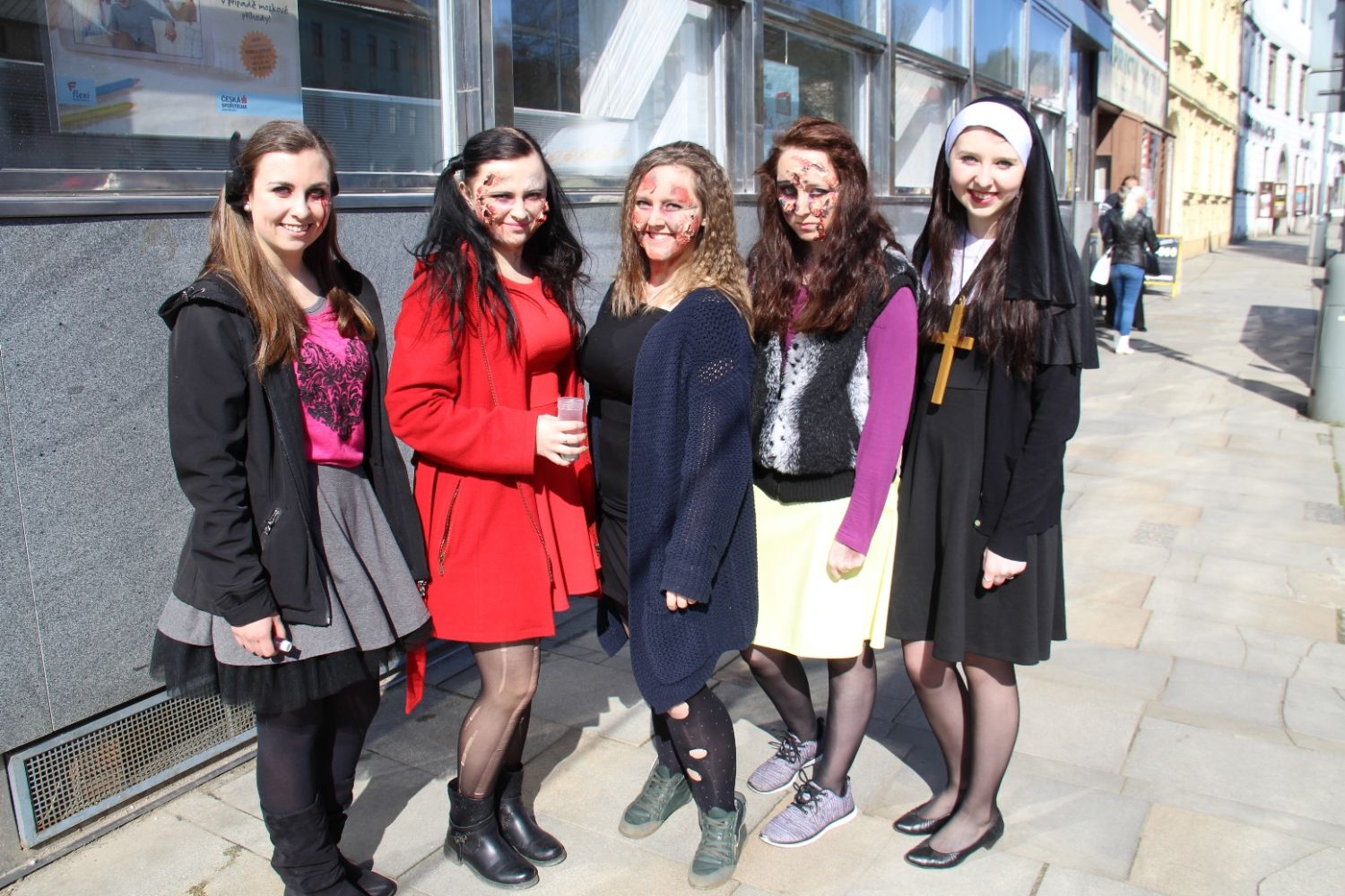 Na náměstí vybírali drobné do kasiček například studenti ze 4. A Hotelové školy Světlá. "Prostě z té nejlepší třídy," zdůraznili. V jejich hloučku bylo možno vidět zombie, jeptišku, včelaře, bezdomovce či mimino v nákupním košíku.