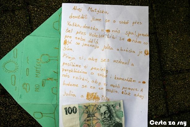 Jelikož jsem celou republikou procházel pěšky, krok po kroku, tak jsem měl jedinečnou možnost poznat naši náturu, vstřícnost a hlavně navštívit krásné kouty naší země. Během cesty jsem většinou přespával u podobně naladěných lidí, jako jsem já sám. Většinou byli také cestovatelé, poutníci a vyslechl jsem si velké množství zajímavých životních příběhů. Celý projekt „Pěšky pro Matěje“ měl u veřejnosti velmi kladné ohlasy. Od počátku cesty se začaly na Matějově sbírkovém účtu objevovat první finanční dary. Během cesty jsem se snažil každému, s kým jsem se dal do řeči, vysvětlit význam své cesty, hlavně pro koho to dělám a ve zkratce převyprávět Matějův příběh. Na cestě jsem s sebou měl letáčky s projektem a Matějovým příběhem a rozdával jsem je každému, kdo se o něj zajímal. Párkrát se ke mně na část cesty někdo i přidal a zpříjemnil mi tak svojí společností putování. Na pár kilometrů se ke mně připojil i Matějův tatínek. Projekt také podpořil Pavel Kupčík, který se rozhodl běžet mi naproti z Prahy do Vsetína. Shodou okolností jsme se setkali v mém rodném Křižanově. Díky Pavlovi se projekt a Matějův příběh dostal ještě více do povědomí lidí a patří mu za to velké uznání a poděkování.