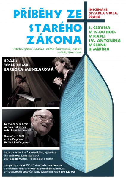 Oslavy desátého výročí otevření Výjimečná kulturní akce se v kapli uskuteční již počtvrté. Po recitálu Nadi Urbánkové a skupiny Bokomara (Luboš Javůrek a Petra Šany Šanclová), po komorním koncertu uměleckého dua Gran Duetto Concertante (Jan Riedlbauch a Miloslav Klaus) a po divadelním projektu režiséra Ivana Baladi Oskar a růžová paní (Martina Eliášová a Jan Sklenář z Klicperova divadla v Hradci Králové) jsme se rozhodli u příležitosti oslav uspořádat hned dva výjimečné večery: