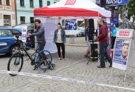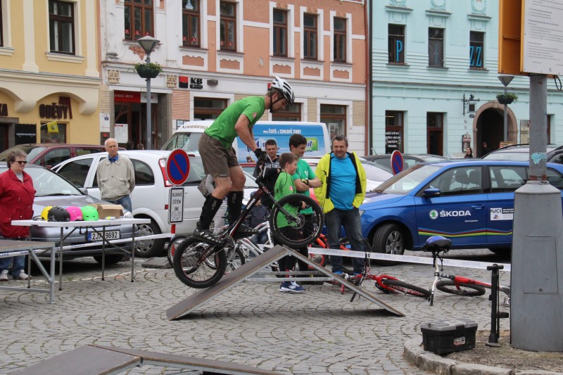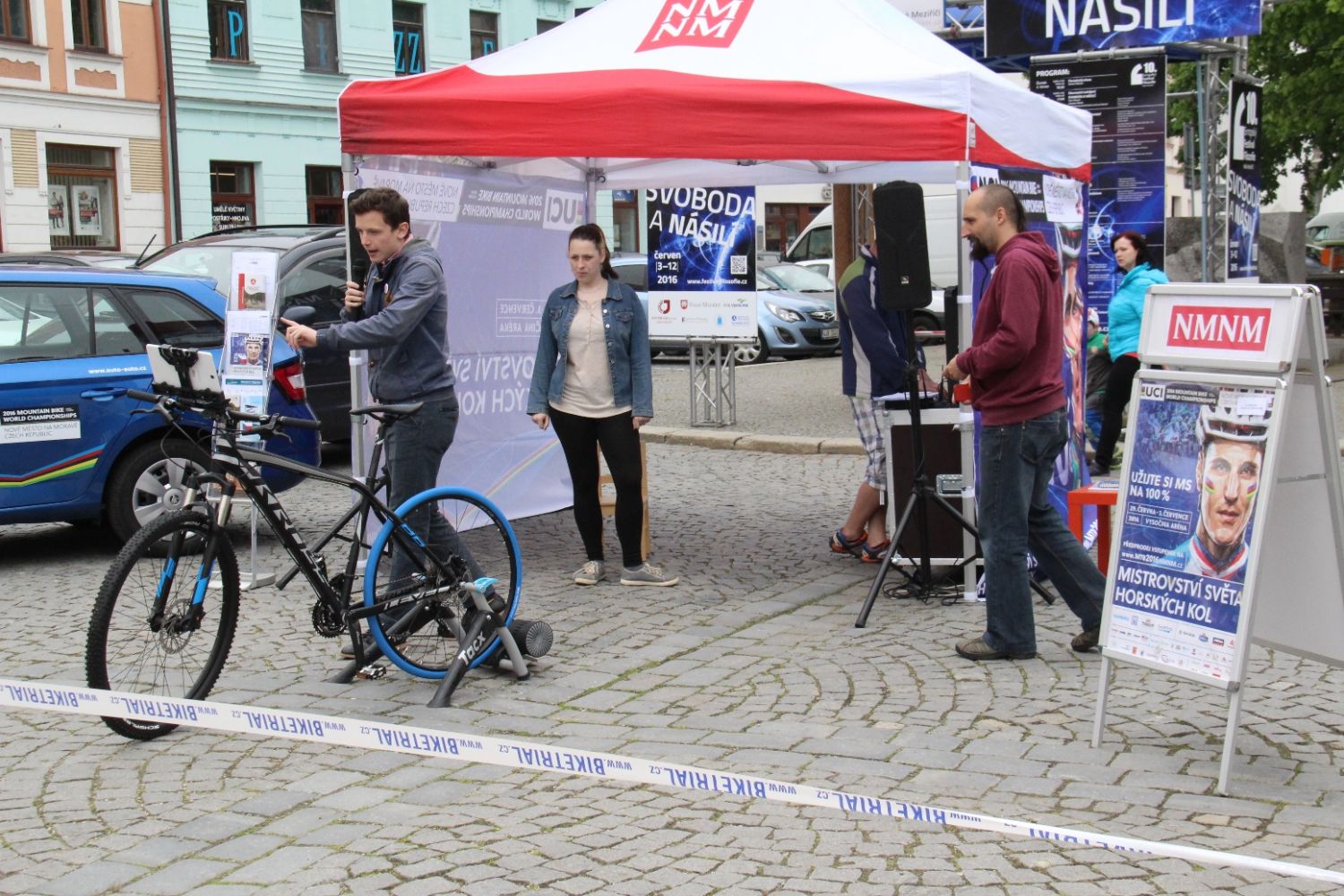Dnes si můžete na velkomeziříčském náměstí vyjet vstupenku na Mistrovství světa horských kol v Novém Městě na Moravě.