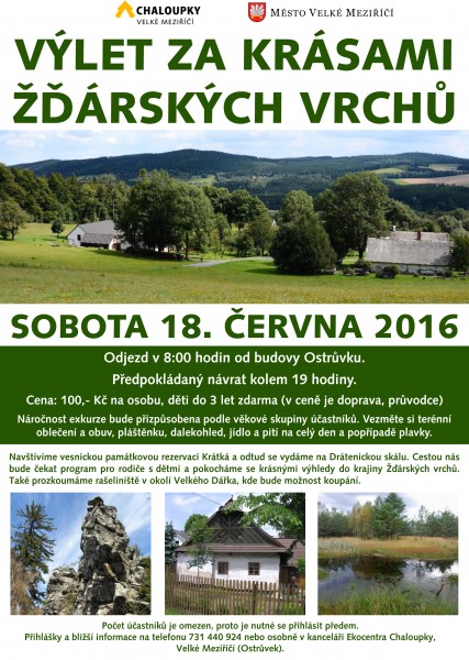 Další zajímavou akcí Chaloupek v měsíci červnu bude výlet do Žďárských vrchů v sobotu 18. 6. Program zahrnuje návštěvu vesnické památkové rezervace Krátká, Drátenickou skálu, okolí Velkého Dářka...