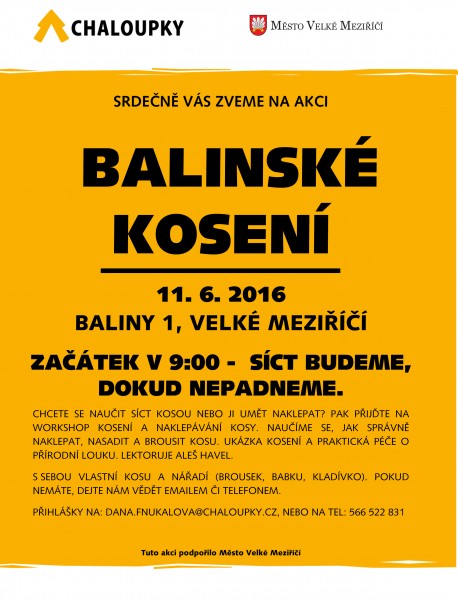 V sobotu 11. 6. mají zájemci možnost navštívit v rámci této akce přírodní terapeutickou zahradu v Balinách. Proběhne zde také "workshop" kosení, připravené budou i dílničky pro děti.