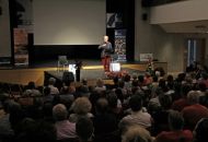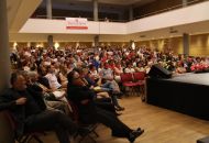 Lidé o přednášce Tomáše Sedláčka včera zaplnili velký sál Jupiter clubu. Sedláček jim nabídl optimističtější pohled na současnou situaci, než všichni jeho dosavadní předchůdci. Dostalo se mu za to díků.
