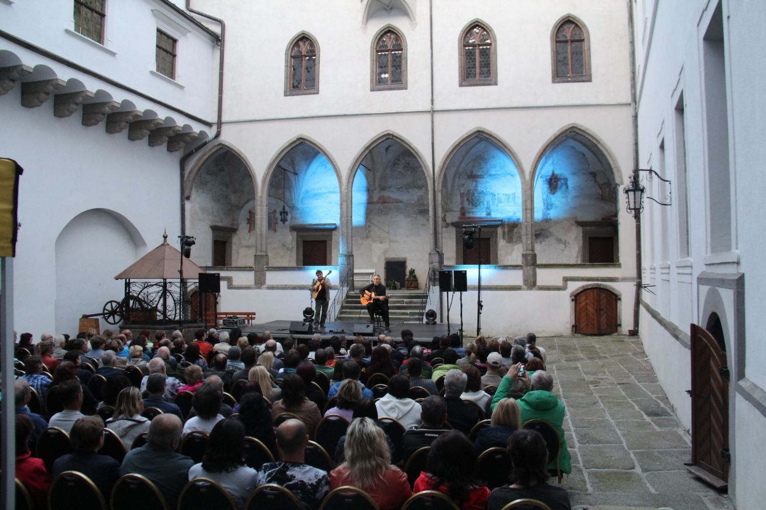 Osmý den filozofického festivalu je za námi. Blok filozofických přednášek v Jupiter clubu zakončili Marek Hrubec a Martin Brabec v pátek odpoledne. Na zámeckém nádvoří pak večer koncertoval Wabi Daněk.